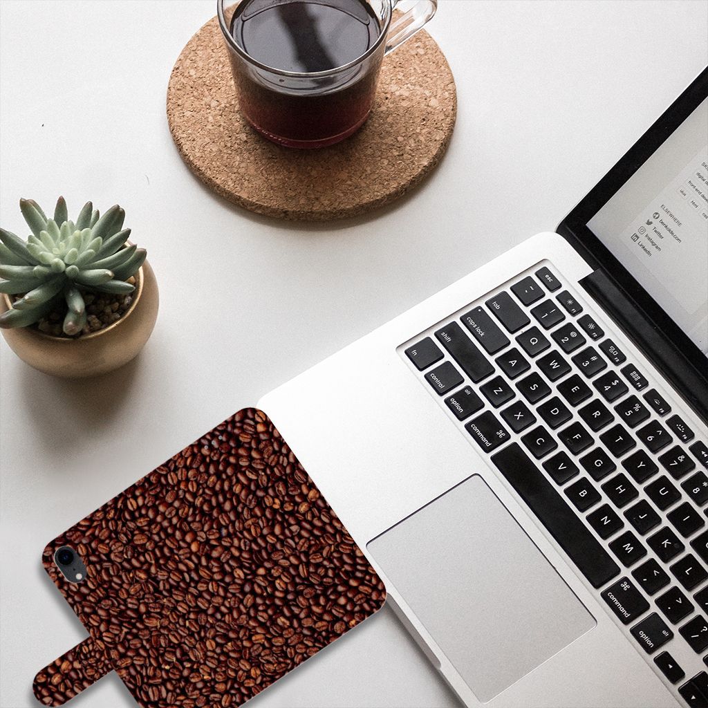Als je de lekkerste koffie wilt dan kun je het beste koffiebonen kopen. Koffie is namelijk het verst wanneer je de bonen zelf maalt. En wie houdt nou niet van de geur van vers gemaalde koffie? Daarom hebben wij de mooiste Koffiebonen op een smartphone hoesje gezet. Ben je barista, dan is dit het perfecte hoesje voor jouw werktelefoon. De koffiebonen staan op een boekhoesje. Er is vrijwel geen betere bescherming dan dit hoesje, dat ook nog eens opbergvakjes heeft en zeer praktisch is. Je kunt je beurs thuislaten met een Apple iPhone Xr Book Cover. Alle zijden van dit hoesje zijn bedrukt, evenals het lipje aan de buitenzijde. Mensen die houden van een stevige espresso, kiezen voor dit degelijke design hoesje met bonen. Er staan ook bonen op het lipje en je kunt zelf een eigen tekst toevoegen.