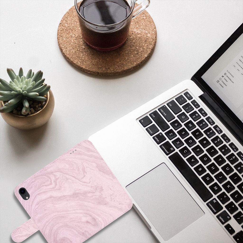 Apple iPhone Xr Bookcase met magnetische sluitclip Marble Pink