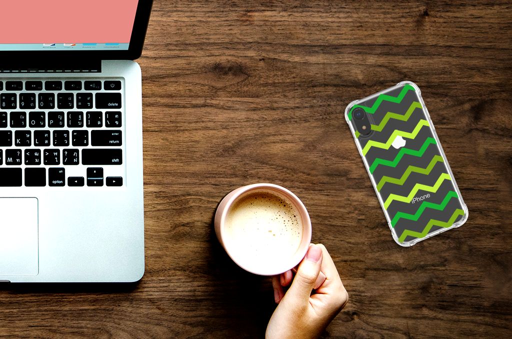 Ben je op zoek naar een uniek telefoonhoesje voor je Apple iPhone Xr? Dan ben je bij B2C Telecom aan het juiste adres! Speciaal voor jou hebben we dit prachtige Zigzag Groen design in onze collectie hoesjes opgenomen. Het design wordt bedrukt op een Doorzichtige Silicone Hoesje en is gemaakt van flexibel rubber. Het hoesje is perfect voor de actieve smartphonegebruiker door de opstaande randen/hoeken. Denk aan mensen die veel sporten, reizen of wandelen en net iets meer zekerheid willen als het op hun geliefde telefoon aankomt. Het design wordt alleen aan de bovenkant van het hoesje bedrukt en de randen blijven transparant. Aan de zijkanten zijn uitsparingen gemaakt waardoor je met gemak alle knoppen en poorten kunt bedienen. Wij adviseren om dit hoesje in combinatie met een screenprotector te gebruiken voor een langere levensduur van je telefoon. Wil je dit hoesje nog iets extra's geven? Voeg dan gratis je naam of een quote toe! Is dit design hoesje toch niet helemaal wat je zocht? Ontwerp dan zelf een hoesje in ons ontwerpprogramma.