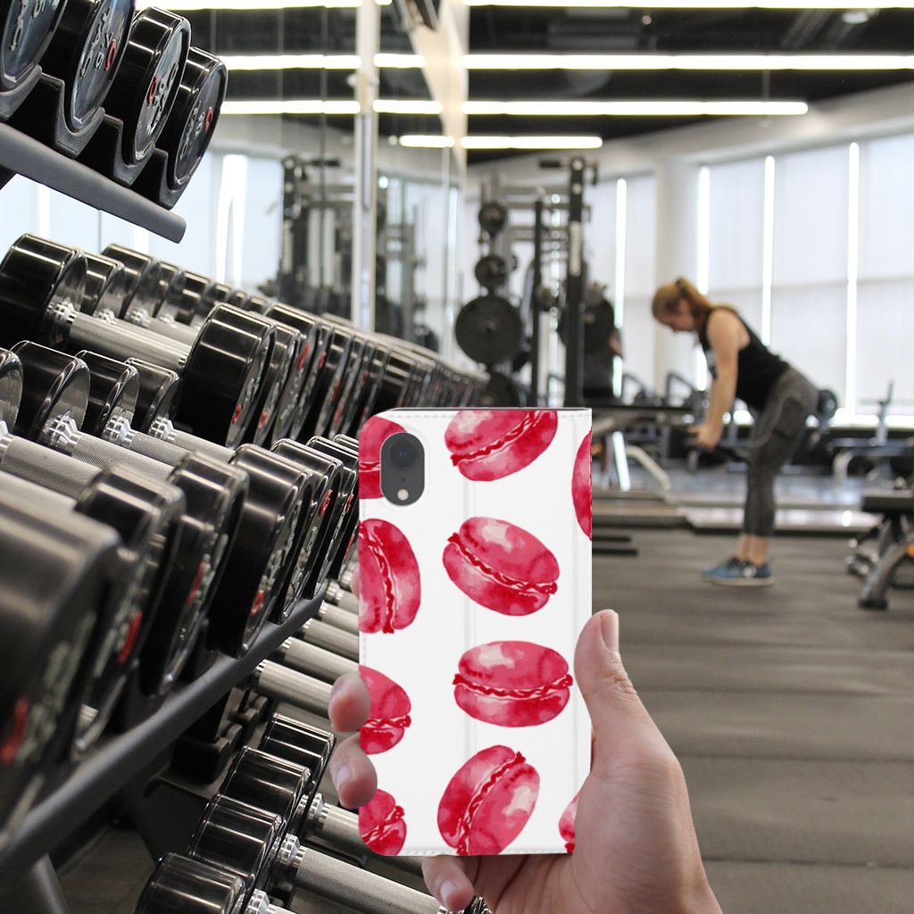 Dit stand hoesje met Pink Macarons is een zeer opvallende bescherming voor jouw smartphone. Macarons zijn Franse koekjes: kleine, rond en luchtig. Ze worden in veel verschillende smaken gemaakt, herkenbaar aan de verschillende kleuren zoals chocolade (donkerbruin), mokka (middenbruin), kersen (rood), pistache (groen), aardbei (roze), framboos (karmijn). Deze kleuren kun je net allemaal zien op dit fraaie design hoesje met roze macarons. Heb je altijd al een Apple iPhone Xr Flip Style Cover willen hebben met roze macarons? Grijp dan nu je kans. Deze case heeft zeer veel goede eigenschappen, zoals 1 opbergvakje en een magnetische sluiting aan de binnenkant. Dit design hoesje met roze macarons wordt aan alle zijden bedrukt. De houder aan de binnenkant van het hoesje is van TPU. De case heeft ook een handige standaard.