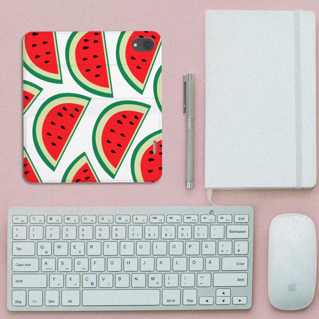 Watermeloenen zijn uitstekende dorstlessers, misschien dat je daarom juist in de zomermaanden extra enthousiast raakt van dit design hoesje Watermelons. Jij blijft gezond als je zo nu en dan een watermeloen neemt, jouw smartphone blijft in tact als je er deze Apple iPhone Xr Flip Style Cover omheen doet. De stand case beschermt jouw telefoon aan alle kanten en beschikt over een 1 opbergvakje en een speciale standaard. Het hoesje wordt afgesloten met een magneet aan de binnenzijde. De houder aan de binnenzijde is van TPU. Je kunt ook kiezen voor andere soorten fruit op je hoesje. Kijk maar eens naar onze andere design hoesjes op onze website.
