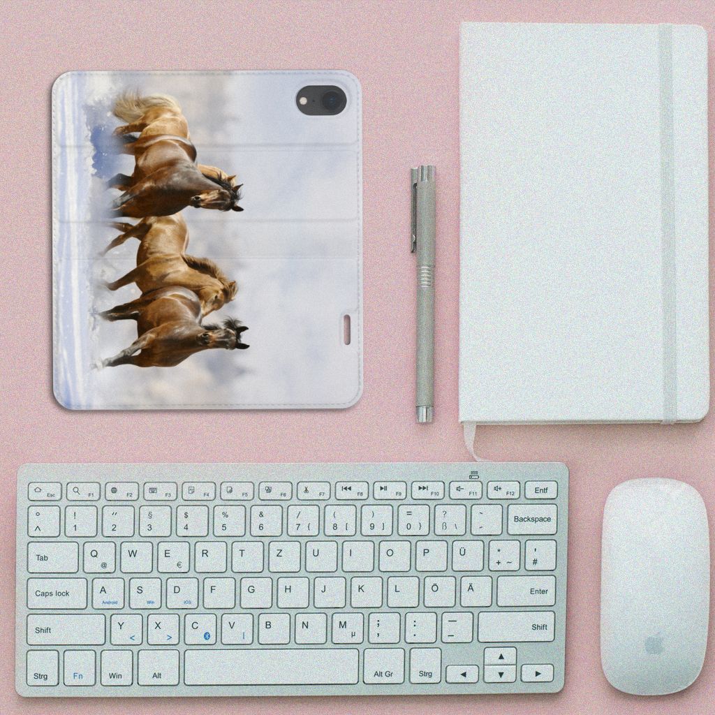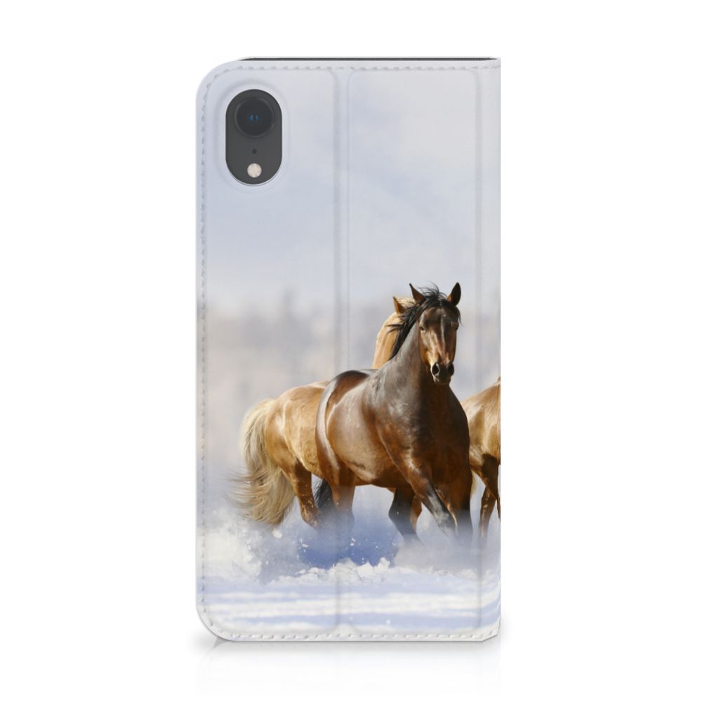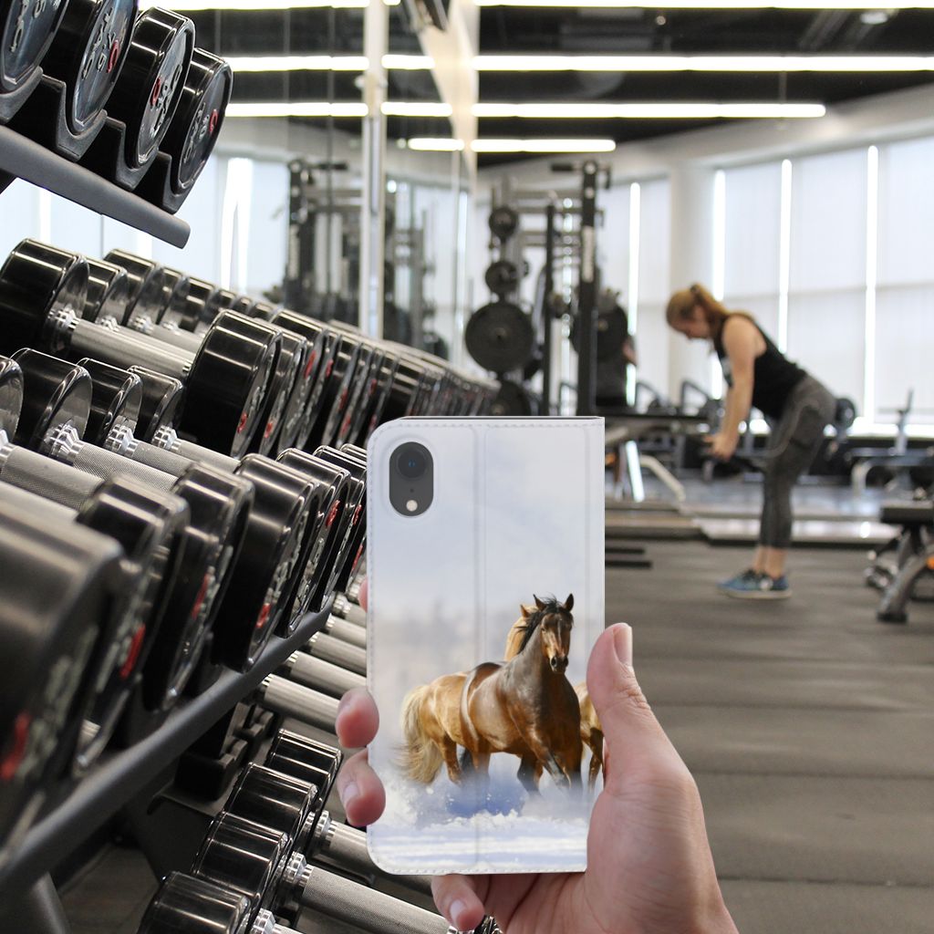 Voor de paardenliefhebbers onder ons hebben we onze collectie uitgebreid met dit design hoesje met print van paarden. Vroeger hield de mens vooral werkpaarden, inmiddels hebben we vriendschap gesloten met het paard. Vandaar dat het ook een favoriet dier is op onze smartphonehoesjes, zoals deze stand cases. Deze Apple iPhone Xr Hoesje maken met Paarden is niet alleen super mooi en chique, het sluit ook nog perfect dankzij de magneet aan de binnenzijde. Verder heeft de case een TPU houder aan de binnenzijde en een houder voor een pasje. Zie je liever je eigen paard terug op een hoesje? Dat kan! Door zelf een uniek hoesje te ontwerpen, met eigen foto’s en teksten. De stand case met paarden wordt aan alle zijden bedrukt.