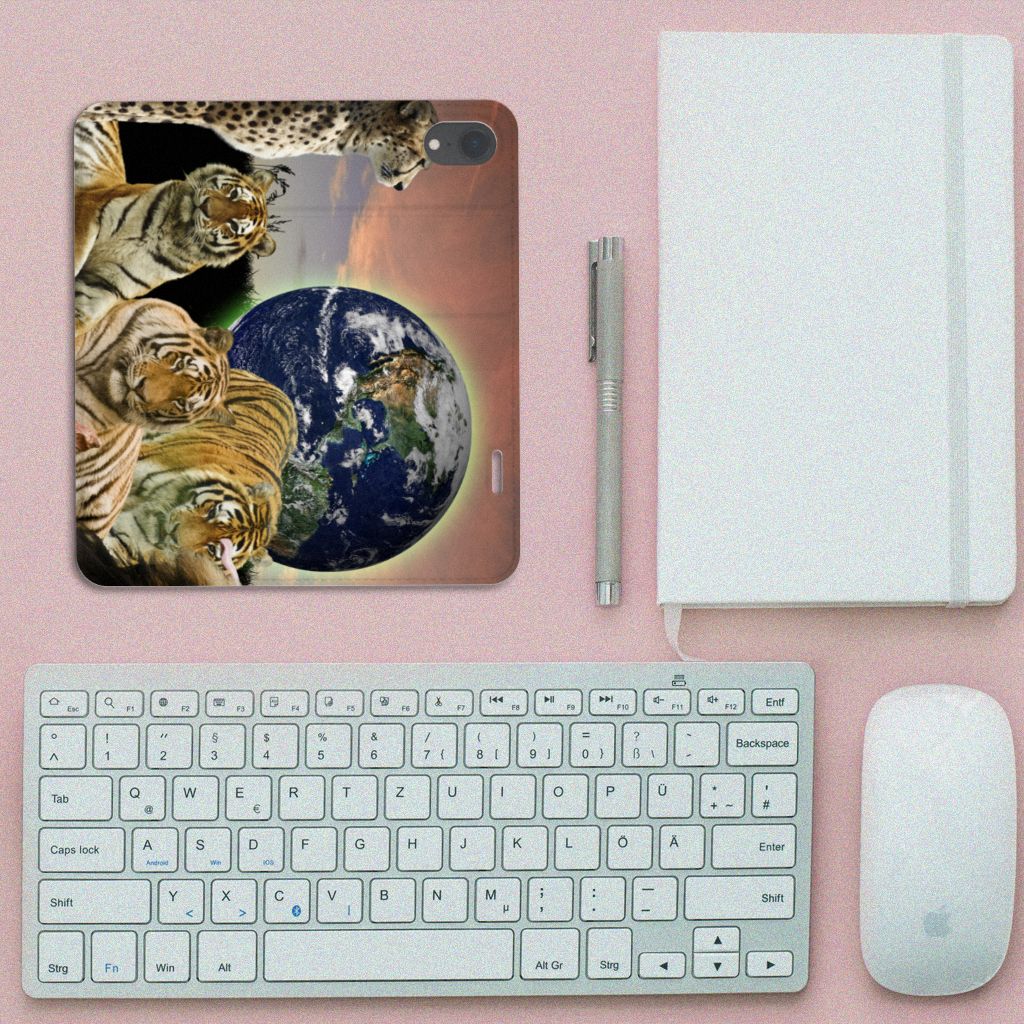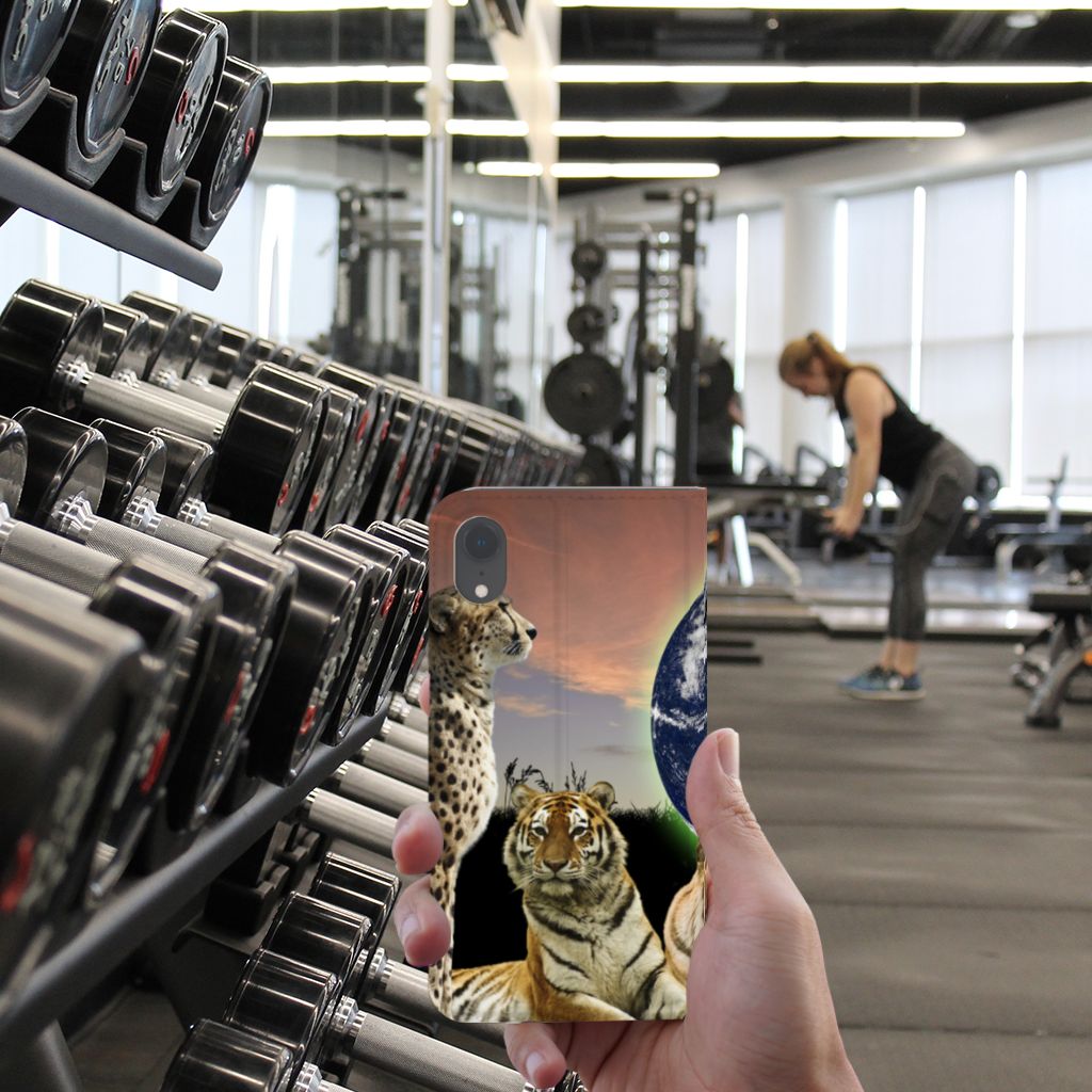 Deze standcase met roofdieren kan exclusief in het bezit van jou komen. Bovendien kun je hier zelf nog unieke teksten en/of beelden aan toevoegen. Je Hoesje maken krijgt dan een unieke identiteit. Roofdieren zoals tijgers op dit hoesje zijn voortdurend op zoek naar een geschikte prooi. De tijgers met aardbol op de achtergrond op deze stand case geven jouw Apple iPhone Xr een hele stoere uitstraling. Deze bijzondere case is van PU-leer (buitenzijde) en TPU (binnenzijde) en beschikt over een houder en een speciale standaard. Verder is deze stand case met roofdieren voorzien van een magnetische sluiting aan de binnenzijde. Je zorgt voor de perfecte bescherming van je smartphone met dit design hoesje met roofdieren met aardbol op de achtergrond.