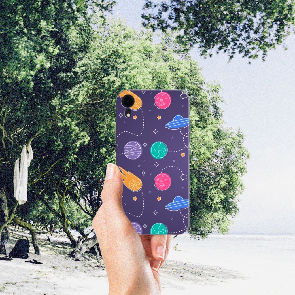 Ben je een beetje geïnteresseerd in buitenaards leven? Dan kan je wel eens enthousiast raken van deze Apple iPhone Xr Silicone Back Cover met Space print. Dus mensen die van science fiction houden zullen deze case ongetwijfeld mooi vinden. Er zijn verschillende planeten en vliegende schotels te ontdekken in dit design hoesje. Dit kunstwerkje is voor heel weinig geld te bestellen op onze website. Je krijgt er maximale bescherming van je smartphone voor terug. De TPU case wordt alleen aan de bovenkant met space bedrukt en is zeer flexibel. De randen van het hoesje blijven transparant en worden niet bedrukt. Je zult ontdekken dat dit hele stevige telefoonhoesje een heel goede bescherming biedt tegen alle vormen van schade. Met dit hoesje hoef je niet bang te zijn dat er krassen op je design komen of scheuren in je scherm.