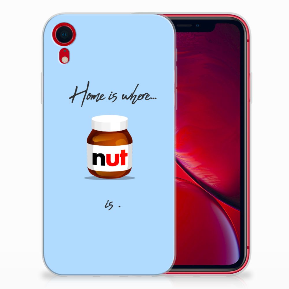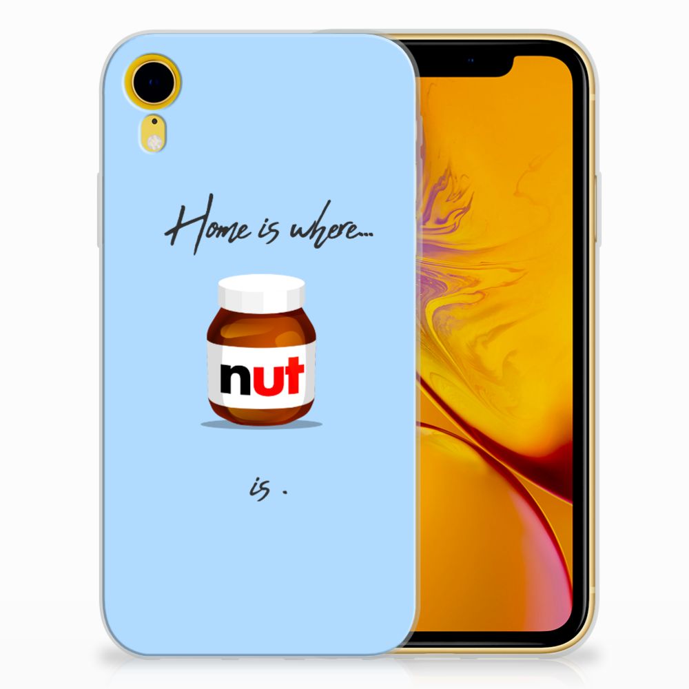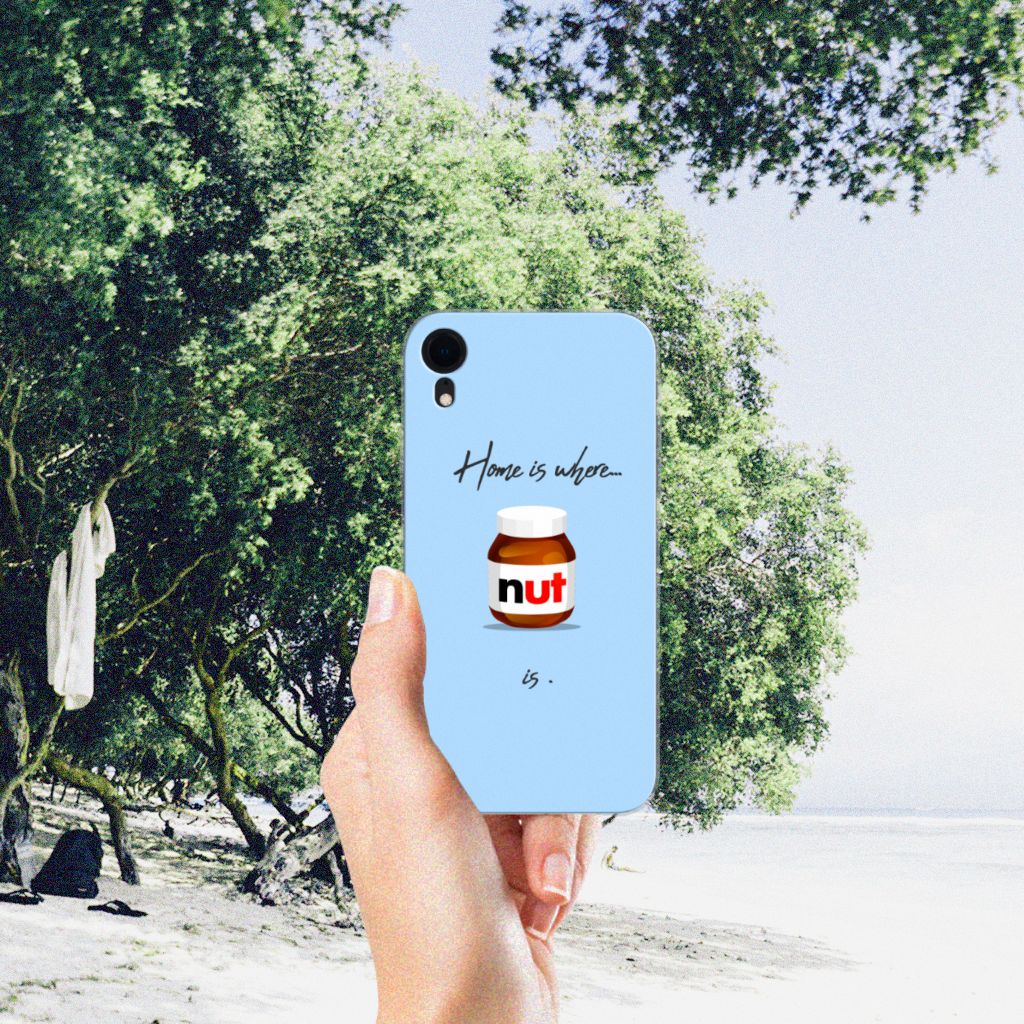 Ben je liefhebber van chocoladepasta, dan is dit het perfecte Apple iPhone Xr Siliconen Case voor jou. De chocoladepasta is enorm populair, dus is het niet zo heel gek dat je een ‘Nut Home’ tpu case in een blauwe kleur aantreft in ons assortiment design hoesjes met illustraties. Dit tpu hoesje is zeer flexibel en past altijd in je broekzak. Alleen de bovenkant van dit hoesje wordt door ons bedrukt in blauwe kleur met de pasta, op zeer duurzame manier. Mensen die houden van de bekendste pasta van het moment, kiezen voor deze blauwe tpu case. Er staan geen illustraties op de zijkanten van een tpu case. Je kunt ook een eigen tekst toevoegen aan het opvallende design.