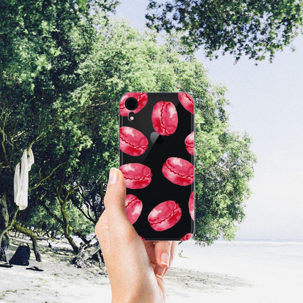 Dit tpu hoesje met Pink Macarons is een zeer opvallende bescherming voor jouw smartphone. Macarons zijn Franse koekjes: kleine, rond en luchtig. Ze worden in veel verschillende smaken gemaakt, herkenbaar aan de verschillende kleuren zoals chocolade (donkerbruin), mokka (middenbruin), kersen (rood), pistache (groen), aardbei (roze), framboos (karmijn). Deze kleuren kun je niet allemaal zien op dit fraaie design hoesje met roze macarons. Heb je altijd al een Apple iPhone Xr Siliconen Case willen hebben met roze macarons? Grijp dan nu je kans. Deze case heeft zeer veel goede eigenschappen, zoals elastisch vermogen, flexibiliteit en schokbestendigheid. Dit design hoesje met roze macarons wordt aan de bovenkant bedrukt, de zijkanten blijven doorzichtig. De case heeft opstaande randen aan de voorzijde en beschermt samen met een screenprotector jouw telefoon perfect. De case heeft ook een handige standaard.