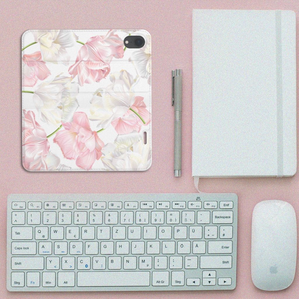 Een bosje bloemen doet een mens (en zijn smartphone) goed. De witte en roze bloemen op dit Apple iPhone Xr Smart Cover geven jouw smartphone een zeer mooie uitstraling. Je wordt er ook meteen een stuk rustiger van als je aan het appen of aan het bellen bent. Valt dan je telefoon op de grond, dan zal er dankzij de stand case met het design Lovely Flowers ontstaan. Onze stand cases met roze en witte bloemen zien er zeer prettig uit en zijn heel praktisch, wat blijkt uit onder meer het vakje aan de binnenkant en de handige standaard waarmee je de smartphone rechtop op tafel neer kunt zetten. De roze en witte bloemen passen goed op alle zijden van de case. Op deze stand case van leer en TPU (houder aan de binnenkant) kun je trouwens ook je eigen bloemige ontwerp zetten. In een paar simpele stappen maak je zelf een stand hoesje met daarop jouw mooiste bloemen.