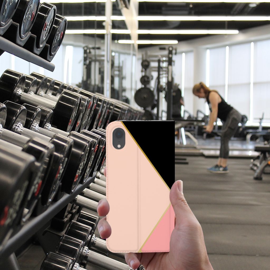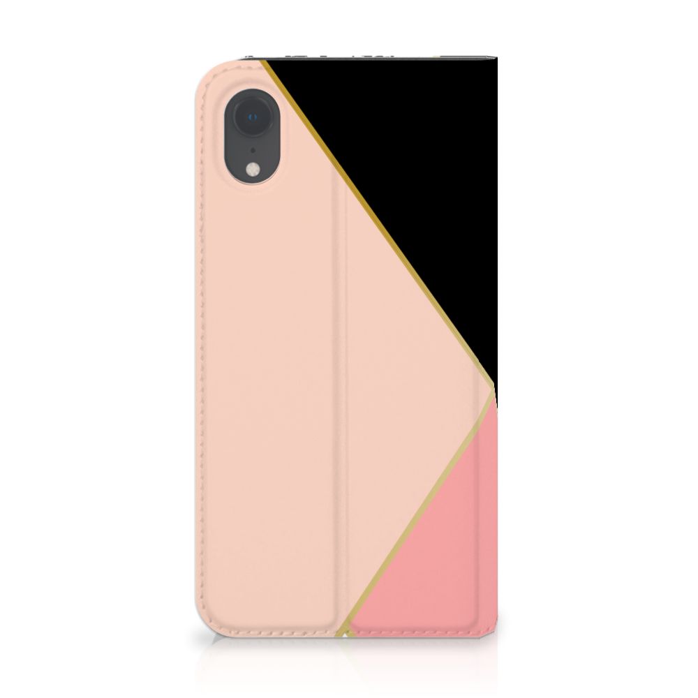 Apple iPhone Xr Print Stand Case Zwart Roze Vormen