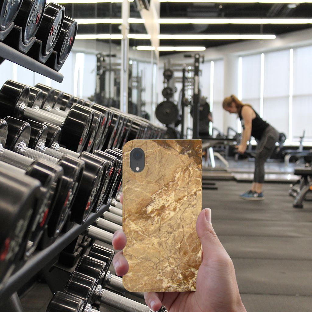 Dit design hoesje met Marmer in lichtbruine kleur is voor de artistiekelingen onder ons. De Grieken en Romeinen wisten het marmer al te waarderen door het in de bouw toe te passen. Naast het witte marmer zijn de diverse soorten marmer in een gevarieerde kleurensamenstelling te krijgen. We hebben verschillende mooie kleuren op design hoesjes gezet, zoals in dit geval het lichtbruine marmer. Dit is een Apple iPhone Xr Standcase met marmer in lichtbruine kleur. Het marmer wordt bedrukt op alle zijden van een stand case, die beschikt over 1 vakje voor een pasje en een magnetische sluiting aan de binnenzijde. Verder heeft de hoes een houder van TPU. Door de rijkdom aan kleuren en varianties in afwerking kunnen ontwerpers met marmer schitterende architectonische projecten realiseren. Wij hebben hetzelfde gedaan en onze ontwerper veel vrijheid geboden. Het resultaat zie je terug in deze stand case met lichtbruin marmer, dat de ideale bescherming voor jouw smartphone is.