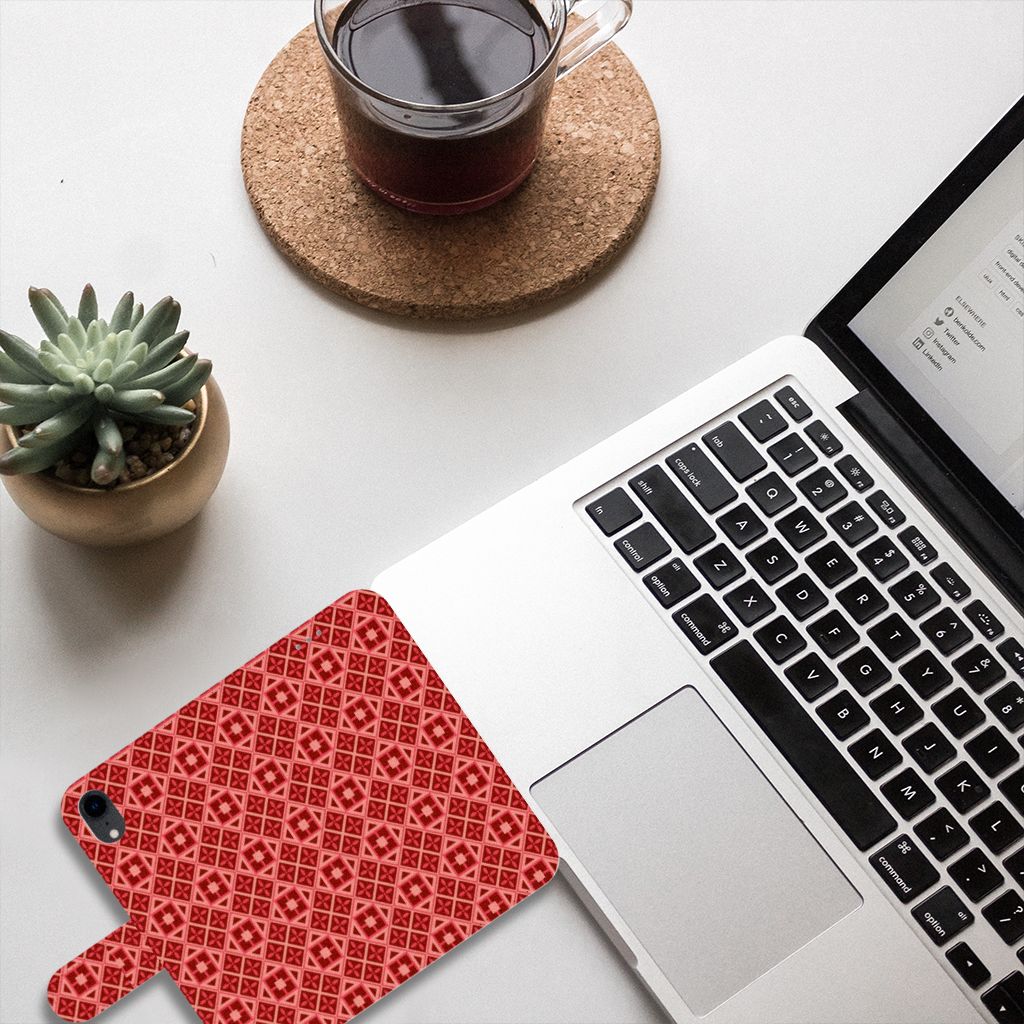 Batikken is een super oude kunstvorm. Met deze methode wordt een geweven stof met verf gedecoreerd. Er zijn stoffen gevonden in het Midden-Oosten en Azië van meer dan tweeduizend jaar oud. Wie had kunnen bedenken dat we zo’n mooie batik-print duizenden jaren later zelfs op telefoonhoesjes zouden terugvinden? Dit Telefoon Hoesje in voor je Apple iPhone Xr heeft een mooie rode kleur en een prachtig symmetrisch patroon. Dankzij de pasjeshouder in het boekhoesje, heb je altijd je belangrijkste bezittingen bij je. Super handig en ook nog eens erg mooi. En bovenal is je telefoon meteen goed beschermd tegen krassen en beschadigingen. Dit Batik red-hoesje heeft een lipje aan de buitenkant en een houder gemaakt van TPU.