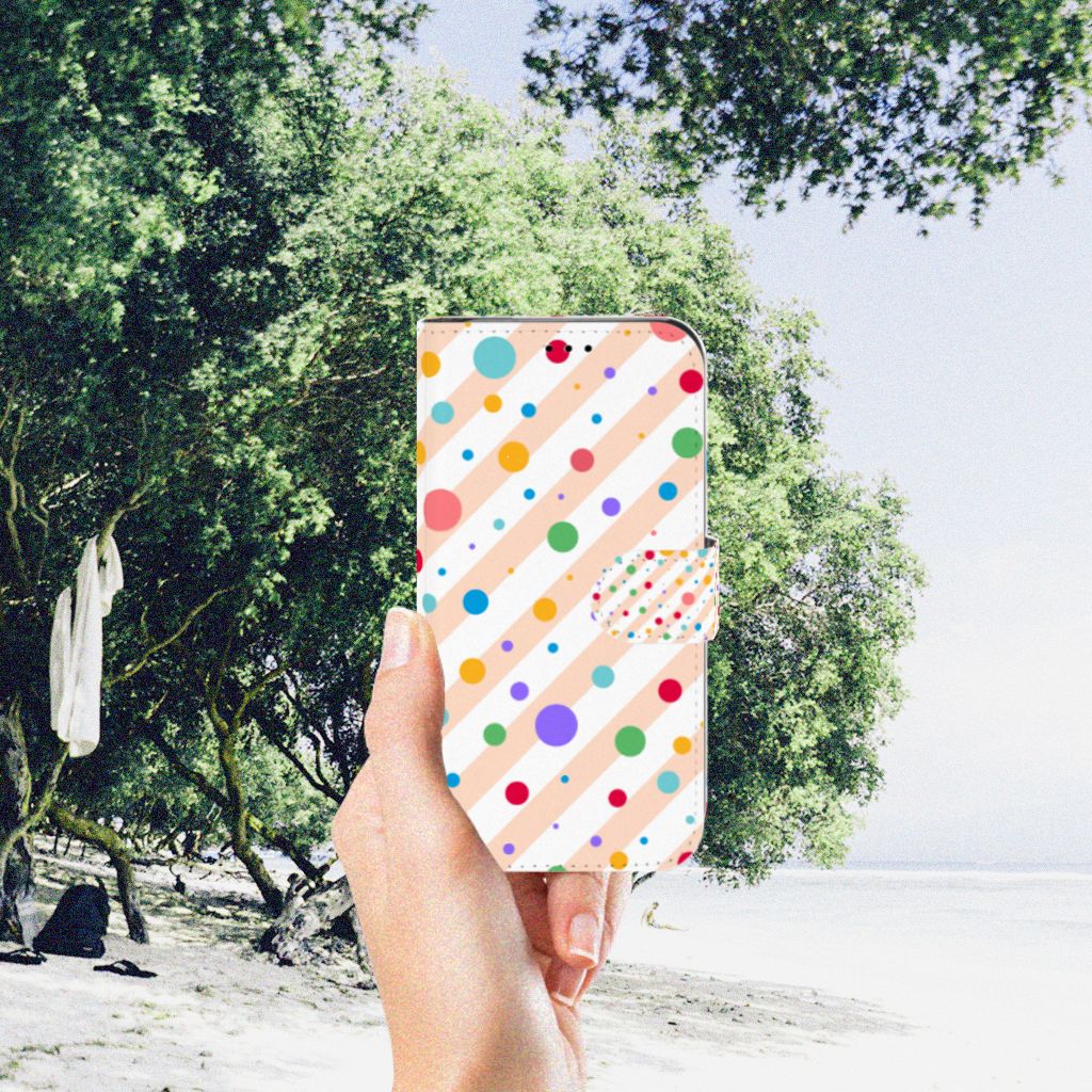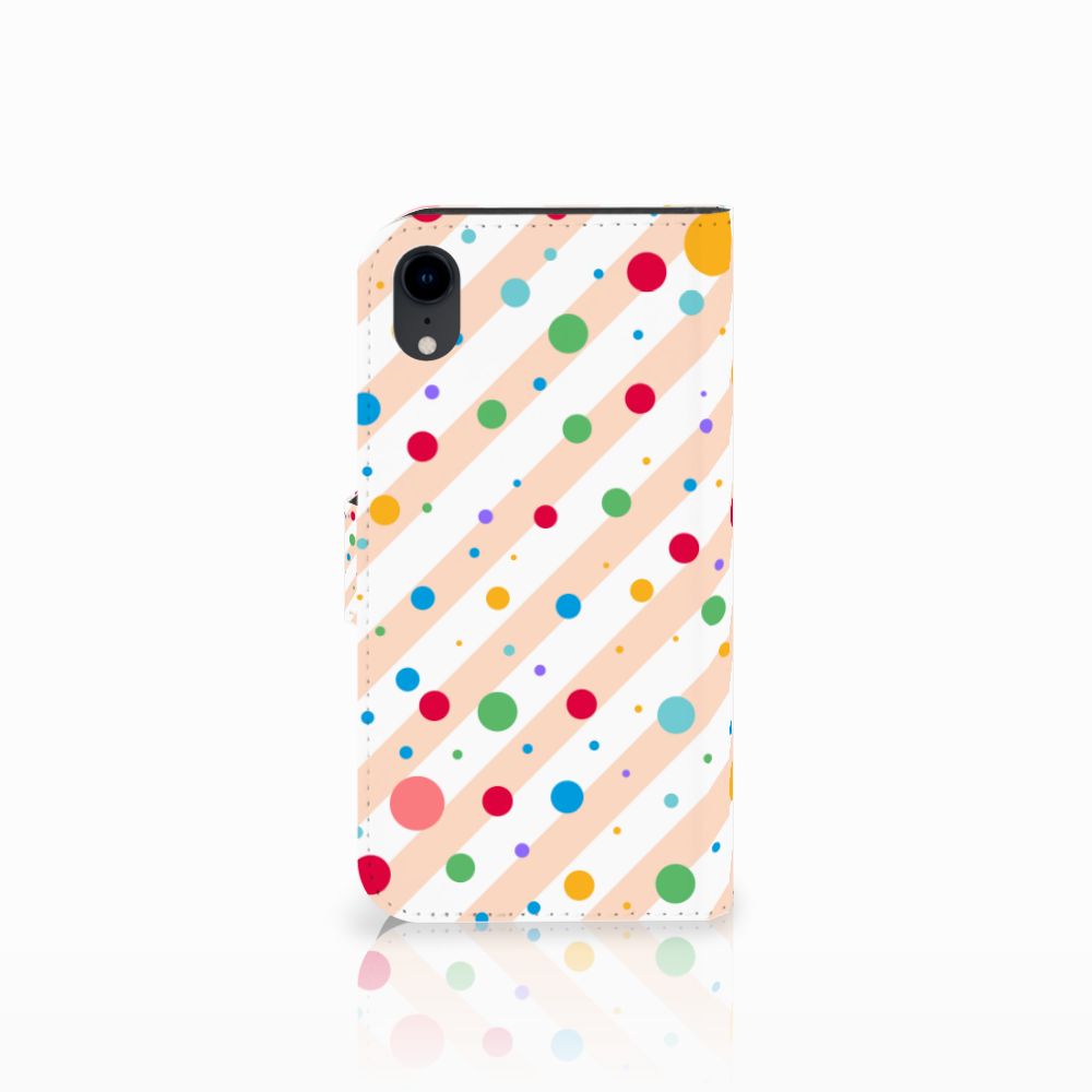 Een Apple iPhone Xr Telefoon Hoesje met verschillende kleuren stippen is een schitterende bescherming van jouw smartphone. Het boekhoesje met het design Dots in alle kleuren van de regenboog komt voor jou als geroepen. Maak je geen gebruik van dit zeer mooie hoesje, dan kan het met jouw smartphone een beetje beroerd aflopen. Dit mooie boekhoesje met verschillende kleuren stippen zorgt voor een volledige bescherming van je smartphone en wordt aan alle zijden bedrukt. Sommige stippen staan ook op het magnetische lipje aan de buitenzijde. Verder is de houder aan de binnenzijde van TPU. Jouw telefoon is dus zeer goed opgeborgen en kan geen kant op. Met een hoesje met stippen in verschillende kleuren op alle zijden blijft jouw telefoon volledig in tact. Heb je liever een boekhoesje met stippen in andere opvallende kleuren? Ontwerp dan zelf case met je eigen foto’s en teksten!