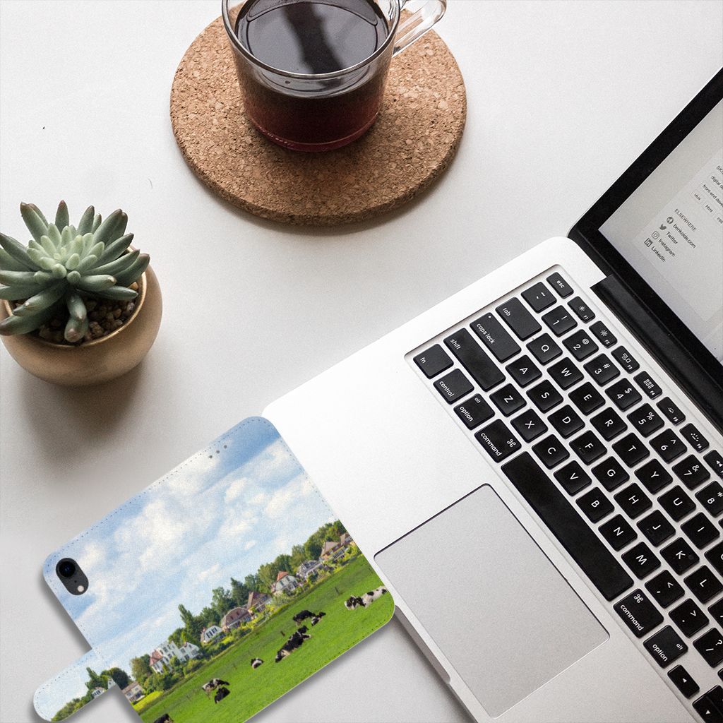 De koe is een kuddedier en graast het liefst met soortgenoten. Dit levert ook mooie plaatjes op, zoals je kunt zien op dit boekhoesje met Koeien. Dit smartphone hoesje met koeien ziet er super strak uit en is voorzien van verschillende opbergvakjes. Een Apple iPhone Xr Telefoonhoesje met Pasjes met grazende koeien beschermt jouw smartphone perfect. Alle zijden worden bedrukt met de koeienprint, net als het afsluitlipje aan de buitenkant. Koeien hebben graasperioden van ongeveer een uur. Ze herkauwen het liefst liggend, zoals op het hoesje. Zo goed als grazen voelt voor koeien, zo duurzaam zal jouw smartphone worden met dit boekhoesje met koeien. De binnenkant van het boekhoesje met koeien is van TPU, de buitenzijde van leer.