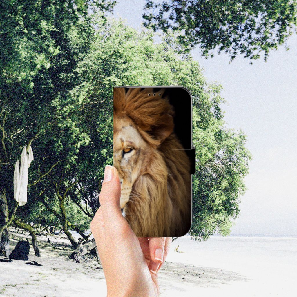 Apple iPhone Xr Telefoonhoesje met Pasjes en met magnetische sluitclip Leeuw