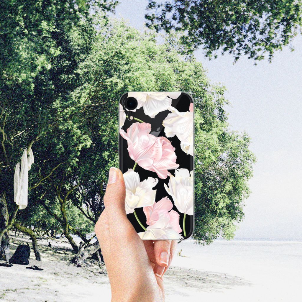 Een bosje bloemen doet een mens (en zijn smartphone) goed. De witte en roze bloemen op deze Apple iPhone Xr TPU Case geven jouw smartphone een zeer mooie uitstraling. Je wordt er ook meteen een stuk rustiger van als je aan het appen of aan het bellen bent. Valt dan je telefoon op de grond, dan zal er dankzij de tpu case met het design Lovely Flowers ontstaan. Helemaal niet als je er een screenprotector bij hebt gekocht. Onze tpu cases met roze en witte bloemen zien er zeer prettig uit en zijn heel praktisch, getuige onder meer de opstaande randen en het flexibele materiaal. Alleen de achterkant van de tpu case wordt bedrukt met roze en witte bloemen. Op deze tpu case kun je trouwens ook een eigen ontwerp zetten. In een paar simpele stappen ontwerp je zelf een stand case met daarop jouw favoriete bloemen.