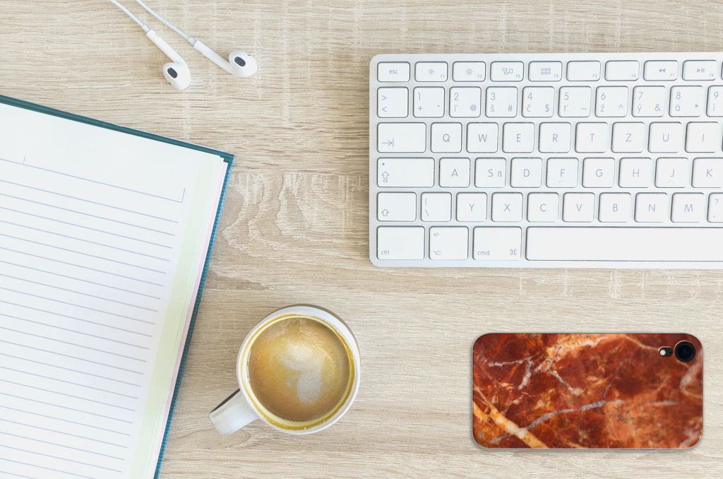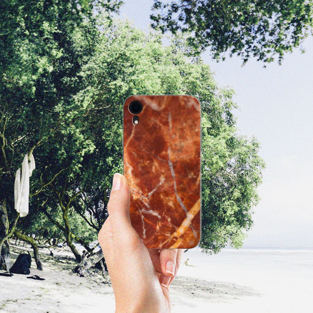 Dit design hoesje met Marmer Bruin is voor de artistieke personen onder ons. De Grieken en Romeinen wisten het al te waarderen door het als bouw- en bekledingsmateriaal toe te passen. Naast het witte Carrara marmer met haar zacht grijze geaderde belijning zijn de diverse soorten in een ruim kleurenpallet te krijgen. We hebben verschillende kleuren op design hoesjes gezet, zoals in dit geval bruin marmer. Dit is een Apple iPhone Xr TPU Siliconen Hoesje met marmer in bruine kleur. Het marmer wordt bedrukt op de voorkant van een tpu case, die beschikt over opstaande randen aan de voorkant en heel goed combineert met een screenprotector. De rijkheid aan kleuren en varianties in afwerking geeft ontwerpers de vrijheid om met marmer hele mooie architectonische projecten te realiseren. Wij hebben onze designer ook veel vrijheid gegeven. Het resultaat zie je terug in deze tpu case met bruin marmer, die jouw smartphone goed beschermt. De zijkanten van de case worden niet bedrukt met marmer.