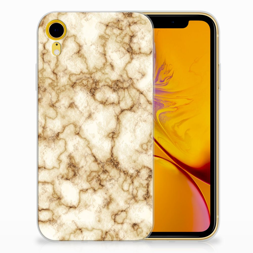 Deze Apple iPhone Xr TPU Siliconen Hoesje met Marmer Goud is het waard om een blokje voor om te rijden. Dit is overigens niet nodig. Als je het hoesje met goud marmer nu bestelt heb je het zeer snel in huis. Je kunt er bij wijze van spreken thuis op gaan zitten wachten. Je hebt diverse soorten marmer. We hebben enkele fraaie kleuren op onze hoesjes gezet, zoals in dit geval het gouden marmer. Het goud marmer wordt bedrukt op de achterkant van de tpu case, die beschikt over alle nodige uitsparingen waardoor je alle knoppen en poorten van je smartphone kunt bedienen. Verder is de case met goud marmer gemaakt van zeer flexibel materiaal. De rijkheid aan kleuren en varianties in afwerking is een schitterende eigenschap van marmer. Dit tpu hoesje met goud marmer heeft ook veel schitterende eigenschappen en is de ideale bescherming voor jouw smartphone.