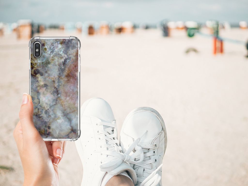 Ben je op zoek naar een uniek telefoonhoesje voor je Apple iPhone Xs Max? Dan ben je bij B2C Telecom aan het juiste adres! Speciaal voor jou hebben we dit prachtige Marmer Grijs design in onze collectie hoesjes opgenomen. Het design wordt bedrukt op een Anti-Shock Hoesje en is gemaakt van flexibel rubber. Het hoesje is perfect voor de actieve smartphonegebruiker door de opstaande randen/hoeken. Denk aan mensen die veel sporten, reizen of wandelen en net iets meer zekerheid willen als het op hun geliefde telefoon aankomt. Het design wordt alleen aan de bovenkant van het hoesje bedrukt en de randen blijven transparant. Aan de zijkanten zijn uitsparingen gemaakt waardoor je met gemak alle knoppen en poorten kunt bedienen. Wij adviseren om dit hoesje in combinatie met een screenprotector te gebruiken voor een langere levensduur van je telefoon. Wil je dit hoesje nog iets extra's geven? Voeg dan gratis je naam of een quote toe! Is dit design hoesje toch niet helemaal wat je zocht? Ontwerp dan zelf een hoesje in ons ontwerpprogramma.