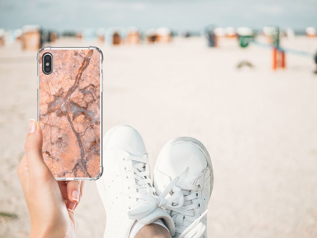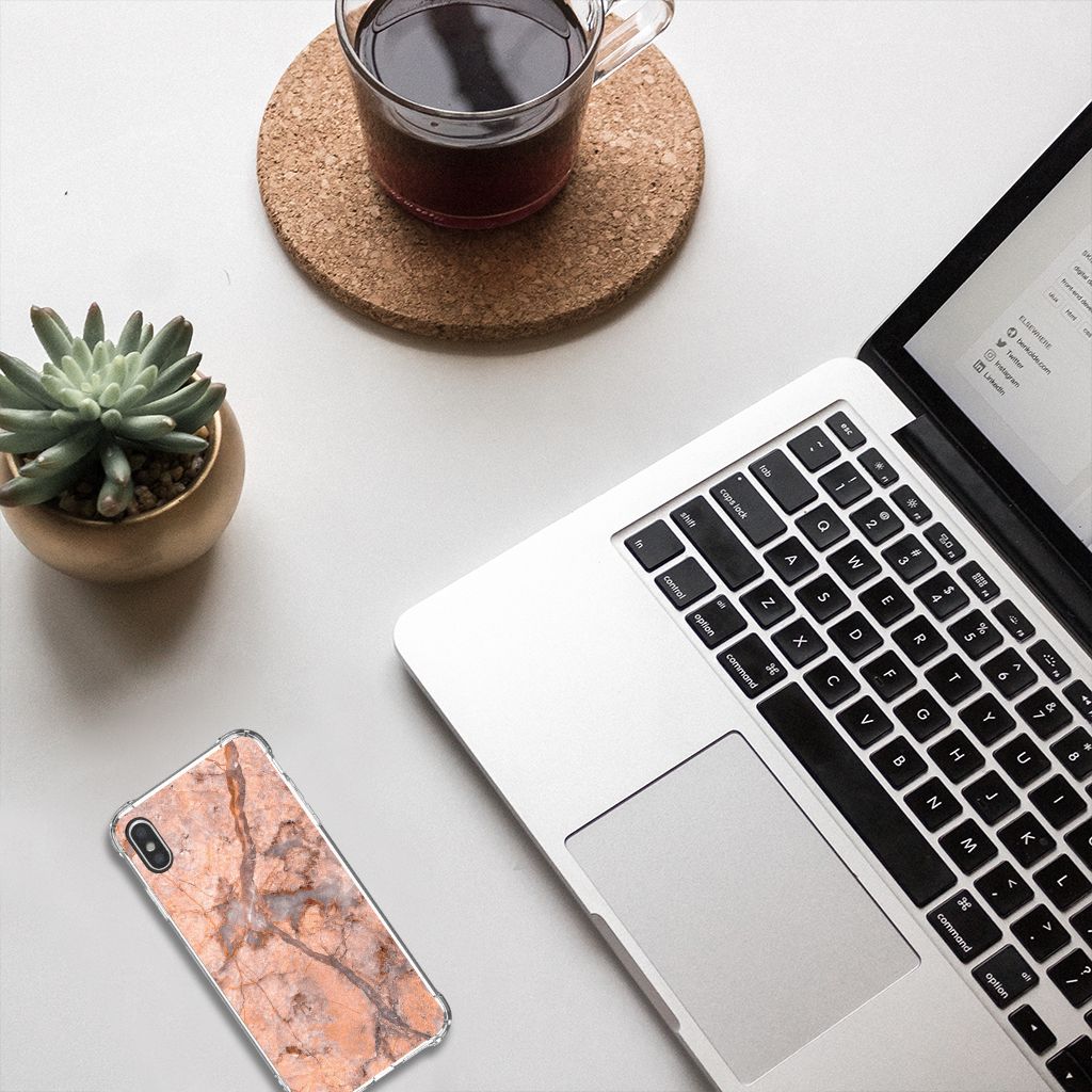 Ben je op zoek naar een uniek telefoonhoesje voor je Apple iPhone Xs Max? Dan ben je bij B2C Telecom aan het juiste adres! Speciaal voor jou hebben we dit prachtige Marmer Oranje design in onze collectie hoesjes opgenomen. Het design wordt bedrukt op een Anti-Shock Hoesje en is gemaakt van flexibel rubber. Het hoesje is perfect voor de actieve smartphonegebruiker door de opstaande randen/hoeken. Denk aan mensen die veel sporten, reizen of wandelen en net iets meer zekerheid willen als het op hun geliefde telefoon aankomt. Het design wordt alleen aan de bovenkant van het hoesje bedrukt en de randen blijven transparant. Aan de zijkanten zijn uitsparingen gemaakt waardoor je met gemak alle knoppen en poorten kunt bedienen. Wij adviseren om dit hoesje in combinatie met een screenprotector te gebruiken voor een langere levensduur van je telefoon. Wil je dit hoesje nog iets extra's geven? Voeg dan gratis je naam of een quote toe! Is dit design hoesje toch niet helemaal wat je zocht? Ontwerp dan zelf een hoesje in ons ontwerpprogramma.