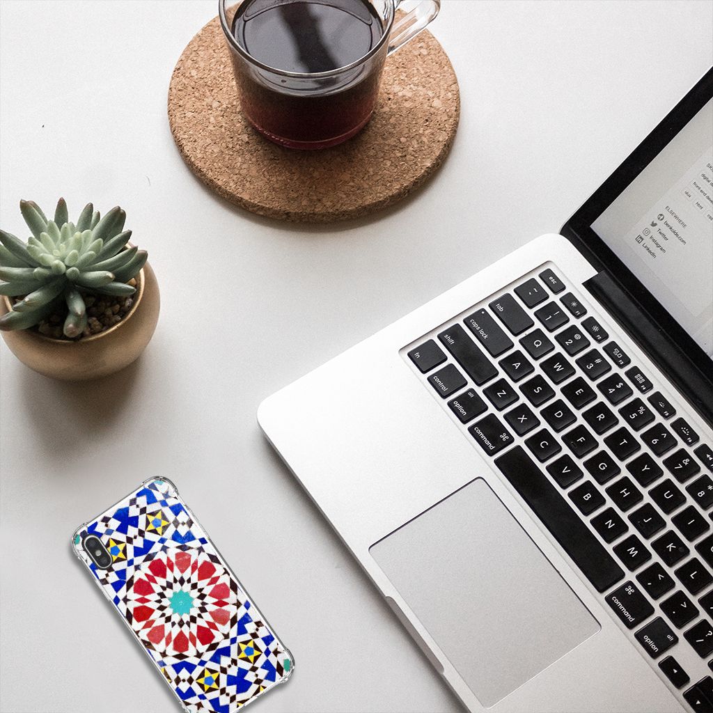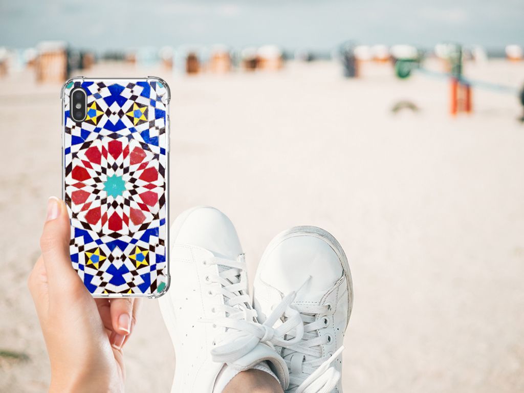 Ben je op zoek naar een uniek telefoonhoesje voor je Apple iPhone Xs Max? Dan ben je bij B2C Telecom aan het juiste adres! Speciaal voor jou hebben we dit prachtige Mozaïek design in onze collectie hoesjes opgenomen. Het design wordt bedrukt op een Anti-Shock Hoesje en is gemaakt van flexibel rubber. Het hoesje is perfect voor de actieve smartphonegebruiker door de opstaande randen/hoeken. Denk aan mensen die veel sporten, reizen of wandelen en net iets meer zekerheid willen als het op hun geliefde telefoon aankomt. Het design wordt alleen aan de bovenkant van het hoesje bedrukt en de randen blijven transparant. Aan de zijkanten zijn uitsparingen gemaakt waardoor je met gemak alle knoppen en poorten kunt bedienen. Wij adviseren om dit hoesje in combinatie met een screenprotector te gebruiken voor een langere levensduur van je telefoon. Wil je dit hoesje nog iets extra's geven? Voeg dan gratis je naam of een quote toe! Is dit design hoesje toch niet helemaal wat je zocht? Ontwerp dan zelf een hoesje in ons ontwerpprogramma.