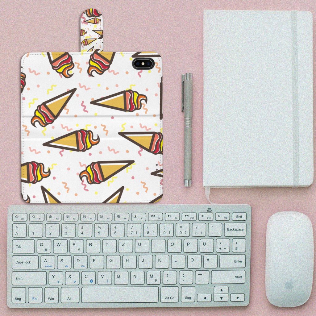 Een vrolijk Apple iPhone Xs Max Book Cover met daarop verschillende ijsjes. Als je daar geen zomers gevoel meer van krijgt, weten wij het ook niet meer. De zomer en ijsjes zijn onlosmakelijk met elkaar verbonden. Tijdens een bezoekje aan het strand mag een lekker ijsje bijvoorbeeld niet ontbreken. Een design hoesje met lekkere Icecream print past daar natuurlijk ook ontzettend goed bij. Jouw telefoon is helemaal beschermd met een boekhoesje met ijsjes design. De aankoop van deze case is een heerlijke investering, die zich gegarandeerd terugbetaalt. Alle zijden van dit hoesje worden bedrukt met ijsjes. De case heeft een lipje aan de buitenzijde voor het afsluiten van de telefoon en de houder aan de binnenzijde is van TPU. Onder alle weersomstandigheden zal deze case met verschillende opbergvakjes perfect functioneren, ook in de zomer met een ijsje in je hand. Dit smaakvolle hoesje is zeer goedkoop te bestellen en wordt zeer snel bezorgd.