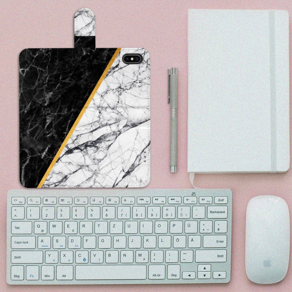 Marmer is een klassiek materiaal en dus ideaal voor een design hoesje als deze, maar zoals je al ziet biedt dit Apple iPhone Xs Max hoesje meer dan een simpel marmer design. Deze Bookcase heeft een zwart en wit marmer patroon met een gouden scheidingslijn. Hierdoor ziet dit design hoesje er niet alleen luxe, maar ook erg artistiek uit. Het betreft een simpel, maar interessant design. Van een design hoesje verwacht je natuurlijk ook dat jouw telefoon er goed in beschermd is en dat is bij deze bookcase zeker het geval. De houder aan de binnenkant is gemaakt van TPU en de buitenkant van kunstleer, samen zorgen deze materialen ervoor dat jouw telefoon aan alle kanten is beschermd. Zo is het niet erg als jouw telefoon een keer per ongeluk uit jouw handen glipt.