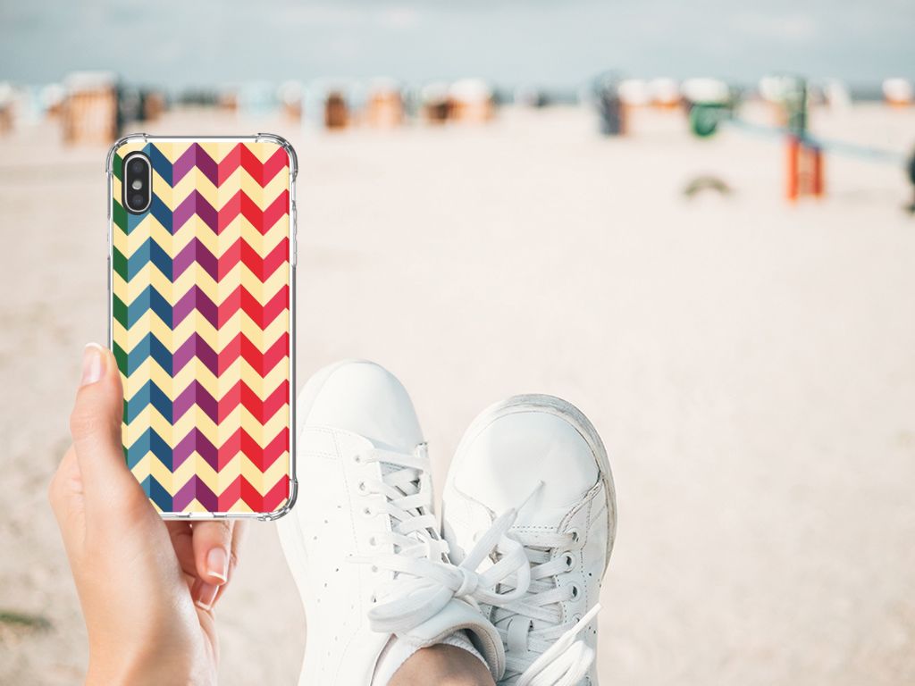 Ben je op zoek naar een uniek telefoonhoesje voor je Apple iPhone Xs Max? Dan ben je bij B2C Telecom aan het juiste adres! Speciaal voor jou hebben we dit prachtige Zigzag Color design in onze collectie hoesjes opgenomen. Het design wordt bedrukt op een Doorzichtige Silicone Hoesje en is gemaakt van flexibel rubber. Het hoesje is perfect voor de actieve smartphonegebruiker door de opstaande randen/hoeken. Denk aan mensen die veel sporten, reizen of wandelen en net iets meer zekerheid willen als het op hun geliefde telefoon aankomt. Het design wordt alleen aan de bovenkant van het hoesje bedrukt en de randen blijven transparant. Aan de zijkanten zijn uitsparingen gemaakt waardoor je met gemak alle knoppen en poorten kunt bedienen. Wij adviseren om dit hoesje in combinatie met een screenprotector te gebruiken voor een langere levensduur van je telefoon. Wil je dit hoesje nog iets extra's geven? Voeg dan gratis je naam of een quote toe! Is dit design hoesje toch niet helemaal wat je zocht? Ontwerp dan zelf een hoesje in ons ontwerpprogramma.