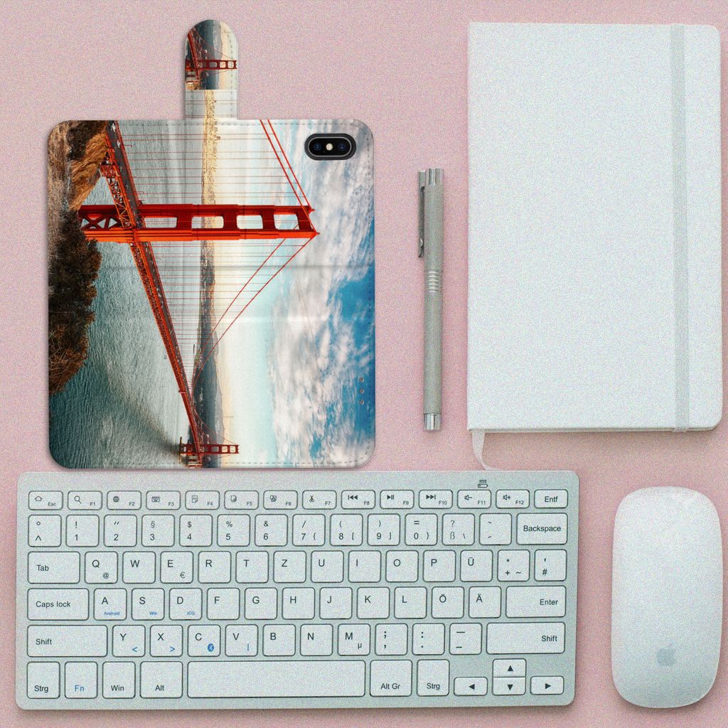 De Golden Gate Bridge is een technisch meesterwerk. Een van de langste en hoogste hangbruggen ter wereld is een schitterend staaltje van ingenieurskunst en een prachtig monument, dat met de rode kleur fel afsteekt tegen de omgeving. Dit monument komt op een fraaie manier tot uitdrukking op een Apple iPhone Xs Max. Het telefoonhoesje met design heeft verschillende vakjes, waarin je pasjes en briefgeld kunt stoppen. Jouw telefoon past precies in de houder van TPU. De Golden Gate Bridge is vanuit vele plekken in en rond San Francisco op een spectaculaire manier zichtbaar. Een deel van de brug komt ook op het lipje te staan, dat jouw Flip Cover aan de buitenkant perfect afsluit. Jouw telefoon is dus aan alle kanten beschermd met dit design hoesje met Golden Bridge print. Alle kanten van het telefoonhoesje worden bedrukt met foto’s.