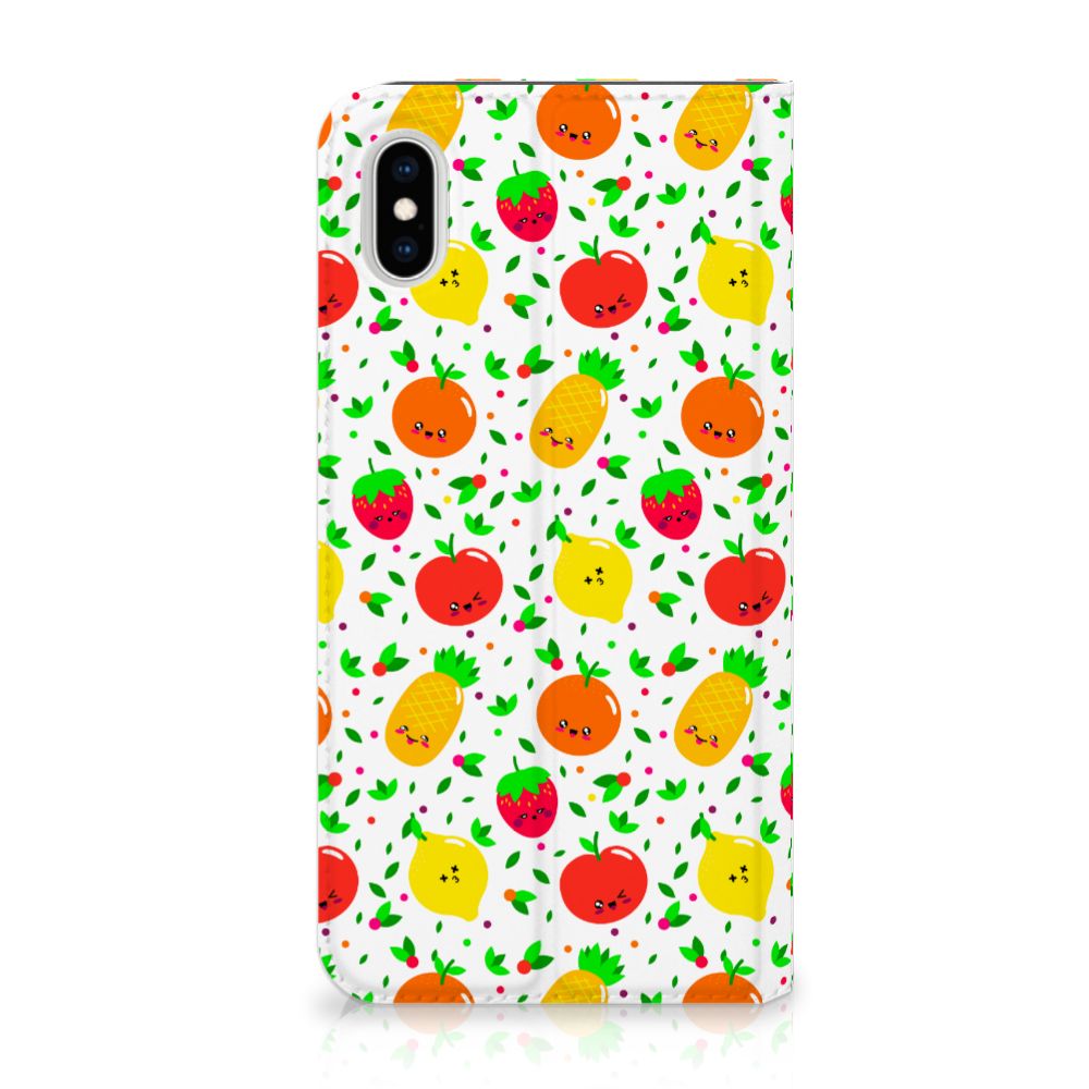 Een fris, fruitig en vrolijk hoesje, deze case met afbeeldingen van aardbeien, ananassen, appels, sinaasappels en citroenen. Minstens twee stuks fruit per dag wordt aanbevolen als dagelijkse hoeveelheid voor de mens. Dit verkleint de kans op allerlei ziekten. Dus met het aantal stukken fruit op de Apple iPhone Xs Max Flip Style Cover zou je wel een maandje zoet moeten zijn. Met het hoesje zelf kun je je hele leven doen, dit is namelijk niet stuk te krijgen. Dit komt door het sterke en flexibele materiaal waarvan het gemaakt is. De vrolijk stemmende case het desing Fruits maakt jouw telefoon dus zeer duurzaam. Zorg ervoor dat jouw smartphone gezond blijft en kies voor dit hoesje met frivool fruit. Een stand case met fruit beschermt jouw telefoon aan alle kanten en beschikt over een 1 opbergvakje en een speciale standaard. Het hoesje met fruit wordt afgesloten met een magneet aan de binnenzijde. De houder aan de binnenzijde is van TPU.