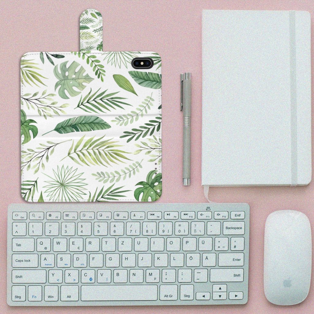 Apple iPhone Xs Max Hoesje met ruimte voor pasjes Leaves