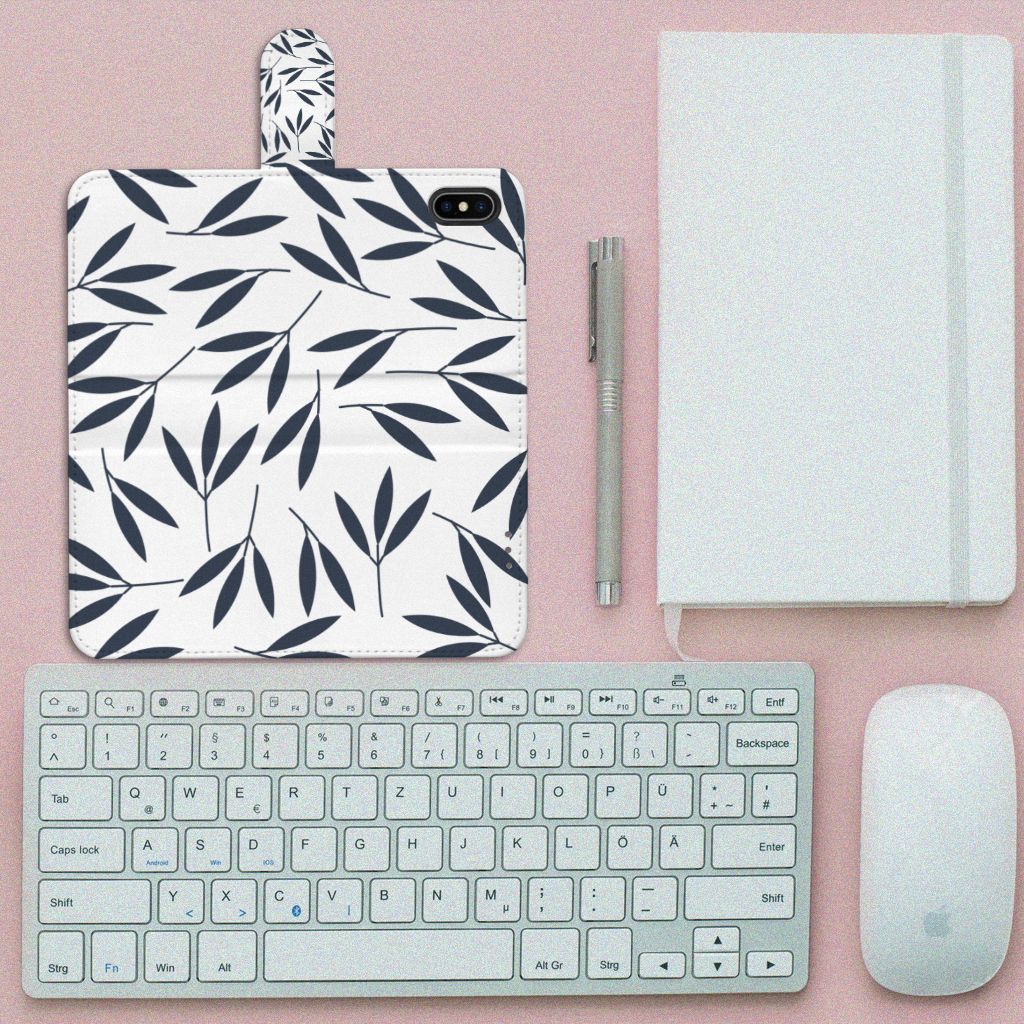 Apple iPhone Xs Max Hoesje met magnetische lipje als sluiting Leaves Blue