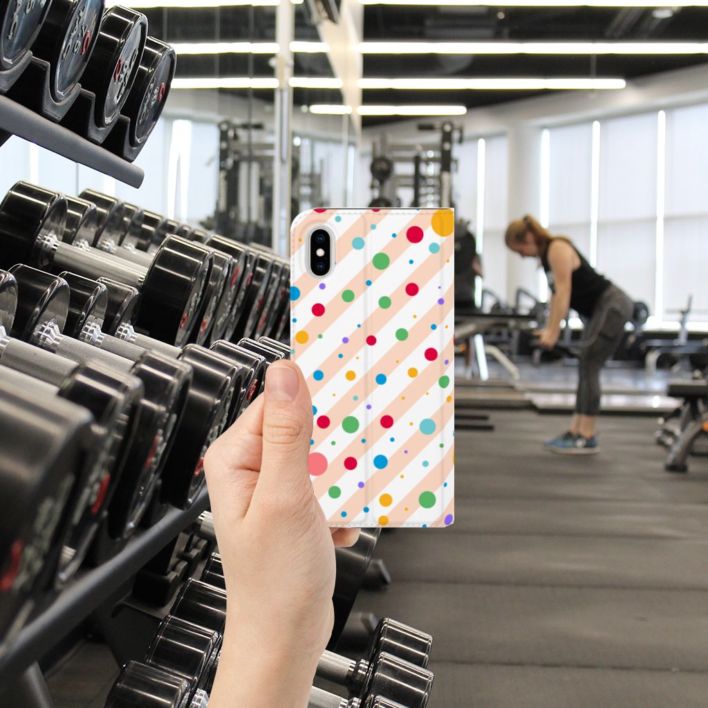 Een Apple iPhone Xs Max Hoesje met Magneet met verschillende kleuren stippen is een schitterende bescherming van jouw smartphone. De stand case met het design Dots in alle kleuren van de regenboog komt voor jou als geroepen. Maak je geen gebruik van dit zeer mooie hoesje, dan kan het met jouw smartphone een beetje beroerd aflopen. Dit mooie stand hoesje met verschillende kleuren stippen zorgt voor een volledige bescherming van je smartphone en wordt aan alle zijden bedrukt. Dankzij de speciale standaard kun je rustig achteroverleunend filmpjes bekijken terwijl je je handen vrij hebt. Verder is de houder aan de binnenzijde van TPU. Jouw telefoon is dus zeer goed opgeborgen en kan geen kant op. Met een hoesje met stippen in verschillende kleuren op alle zijden blijft jouw telefoon volledig in tact. Heb je liever een stand case met stippen in andere opvallende kleuren? Ontwerp dan zelf case met je eigen foto’s en teksten!