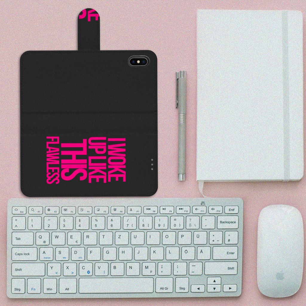 Met dit zwarte Apple iPhone Xs Max Hoesje met naam met paarse tekst heb je een geweldige bescherming van je smartphone in handen. Dit zwarte hoesje met Woke Up tekst is een must voor jouw smartphone. Met dit design hoesje tekst val je ook zeker op. Je weet ook zeker dat het hoesje exclusief is. Het design is gemaakt door B2C Telecom. Het hoesje heeft verschillende vakjes en is aan alle zijden bedrukt. Ook het lipje aan de buitenkant kan worden bedrukt. De houder is van TPU, de buitenzijde van PU-leer. We willen je er ook op wijzen dat je zelf een hoesje kunt ontwerpen, met eigen beelden en teksten. Met onze Phone Case Designer kun je zelfs opvallende effecten, patronen en clip arts aan het ontwerp toevoegen.