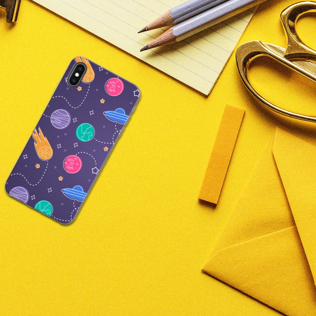 Ben je een beetje geïnteresseerd in buitenaards leven? Dan kan je wel eens enthousiast raken van deze Apple iPhone Xs Max Silicone Back Cover met Space print. Dus mensen die van science fiction houden zullen deze case ongetwijfeld mooi vinden. Er zijn verschillende planeten en vliegende schotels te ontdekken in dit design hoesje. Dit kunstwerkje is voor heel weinig geld te bestellen op onze website. Je krijgt er maximale bescherming van je smartphone voor terug. De TPU case wordt alleen aan de bovenkant met space bedrukt en is zeer flexibel. De randen van het hoesje blijven transparant en worden niet bedrukt. Je zult ontdekken dat dit hele stevige telefoonhoesje een heel goede bescherming biedt tegen alle vormen van schade. Met dit hoesje hoef je niet bang te zijn dat er krassen op je design komen of scheuren in je scherm.