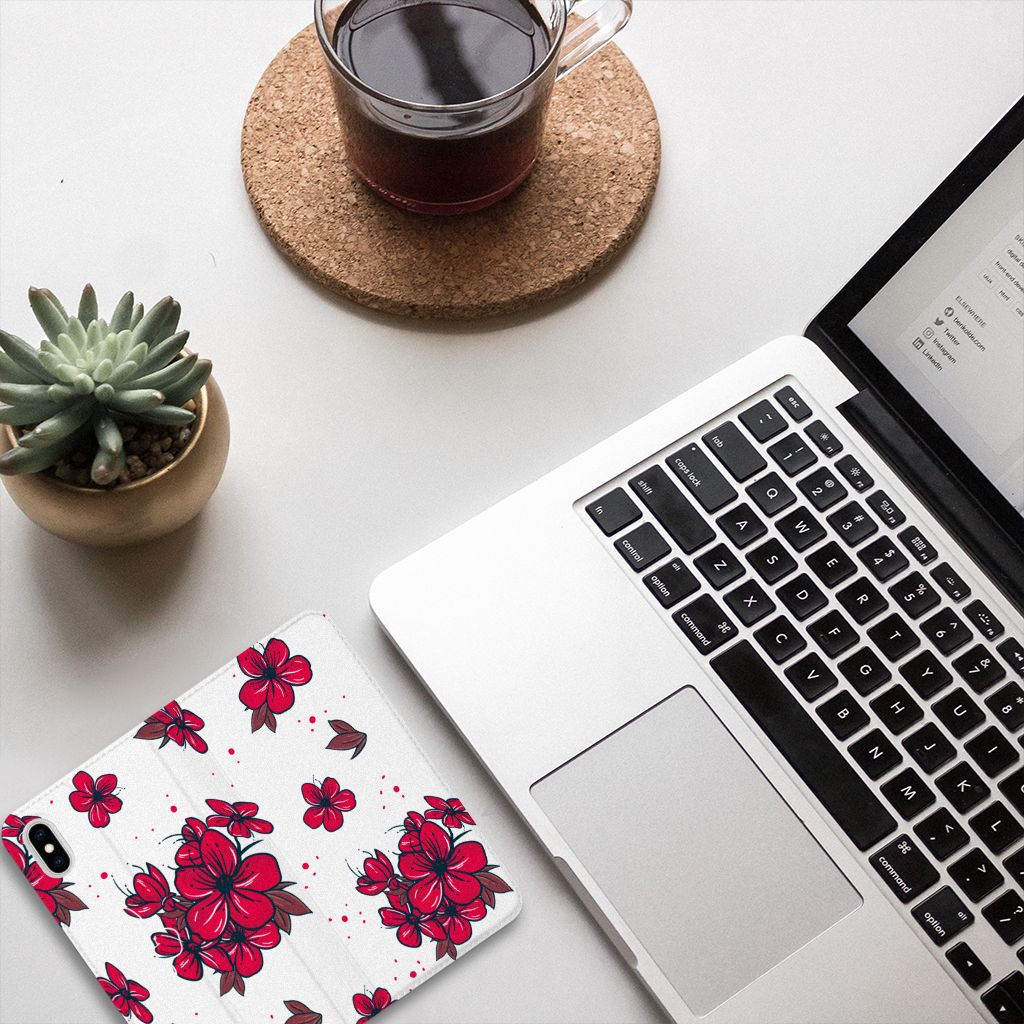 Wie denkt aan Japan, denkt al gauw aan die prachtige kersenbomen die in het begin van de lente in bloei staan en het land hullen in een prachtige zee van bloesem. Wie elke dag wil genieten van deze mooie kersenbloesem, kan natuurlijk ook kiezen voor dit mooie telefoonhoesje! Dankzij de witte achtergrond knallen de rode bloemetjes er mooi uit. Dit blossom red-design staat op een Smart Cover voor de Apple iPhone Xs Max. Dit populaire smartphonehoesje met het heeft één vakje voor een pasje of briefgeld en is aan alle zijden bedrukt. Met de standcase zet je je telefoon gemakkelijk neer, zodat je je handen vrij hebt als je bijvoorbeeld een video wilt kijken. De binnenkant van de standcase is van grijs PU-leer. Dat is fijn, omdat je daardoor niet snel vlekken ziet op je hoesje.