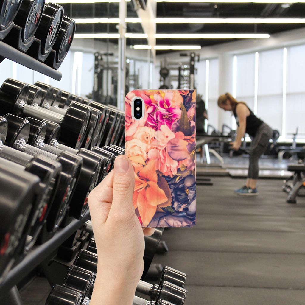 Dit Bosje Bloemen doet een mens en zijn smartphone goed. De oranje, paarse en roze bloemen op deze Apple iPhone Xs Max Smart Cover geven jouw smartphone een zeer sierlijke uitstraling. Je wordt er ook meteen vrolijker van als je aan het appen, mailen of aan het bellen bent. Valt dan je telefoon op de grond, dan zal er dankzij de stand case met oranje, paarse en roze bloemen geen schade ontstaan. Onze stand cases met oranje, paarse en roze bloemen bieden de allerbeste bescherming en zijn heel praktisch, wat blijkt uit onder meer het vakje aan de binnenkant en de handige standaard waarmee je de smartphone rechtop op tafel neer kunt zetten. De oranje, paarse en roze bloemen passen goed op alle zijden van de case. Op deze stand case van leer en TPU (houder aan de binnenkant) is het ook mogelijk je eigen ontwerp te zetten. In no time maak je zelf een stand case met daarop foto’s van jouw favoriete bloemen.