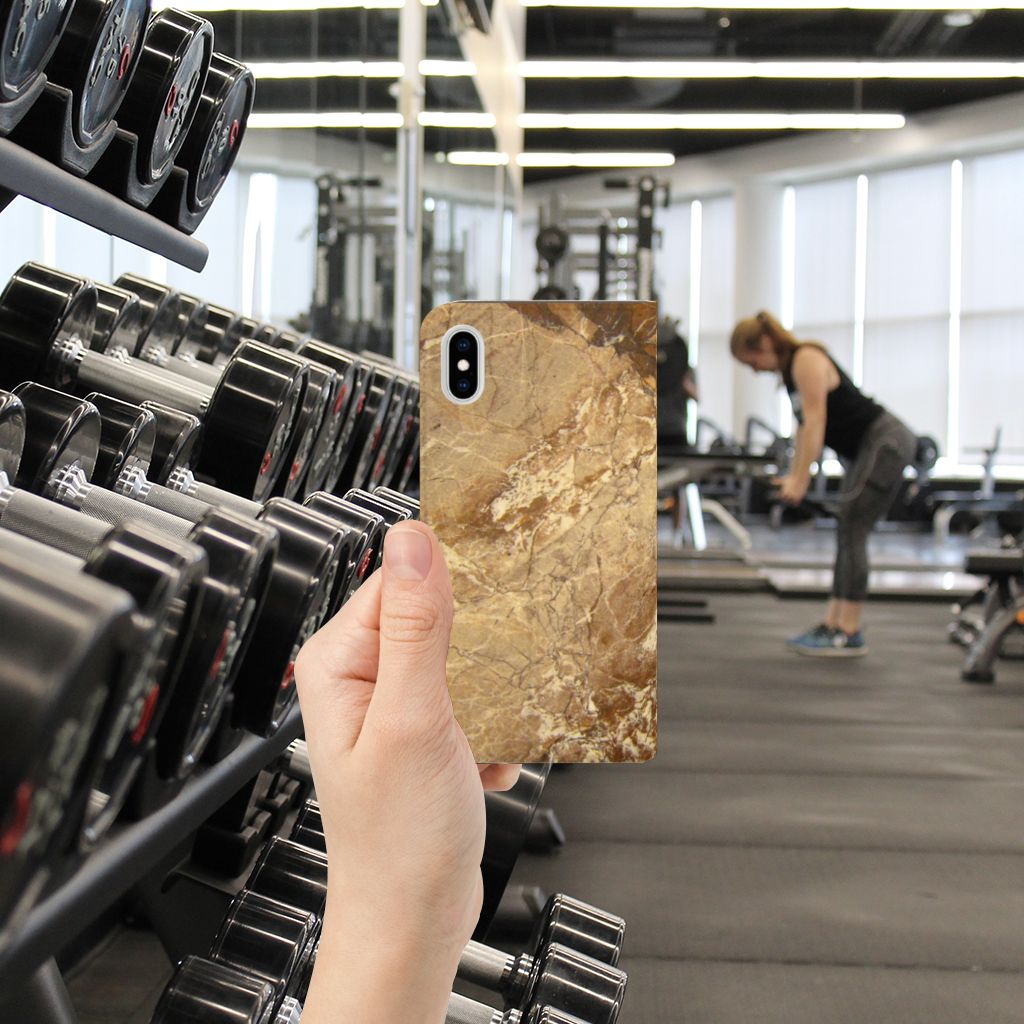 Dit design hoesje met Marmer in lichtbruine kleur is voor de artistiekelingen onder ons. De Grieken en Romeinen wisten het marmer al te waarderen door het in de bouw toe te passen. Naast het witte marmer zijn de diverse soorten marmer in een gevarieerde kleurensamenstelling te krijgen. We hebben verschillende mooie kleuren op design hoesjes gezet, zoals in dit geval het lichtbruine marmer. Dit is een Apple iPhone Xs Max Standcase met marmer in lichtbruine kleur. Het marmer wordt bedrukt op alle zijden van een stand case, die beschikt over 1 vakje voor een pasje en een magnetische sluiting aan de binnenzijde. Verder heeft de hoes een houder van TPU. Door de rijkdom aan kleuren en varianties in afwerking kunnen ontwerpers met marmer schitterende architectonische projecten realiseren. Wij hebben hetzelfde gedaan en onze ontwerper veel vrijheid geboden. Het resultaat zie je terug in deze stand case met lichtbruin marmer, dat de ideale bescherming voor jouw smartphone is.