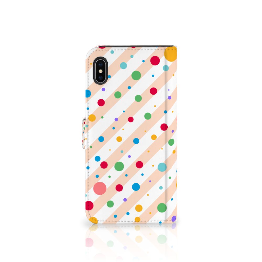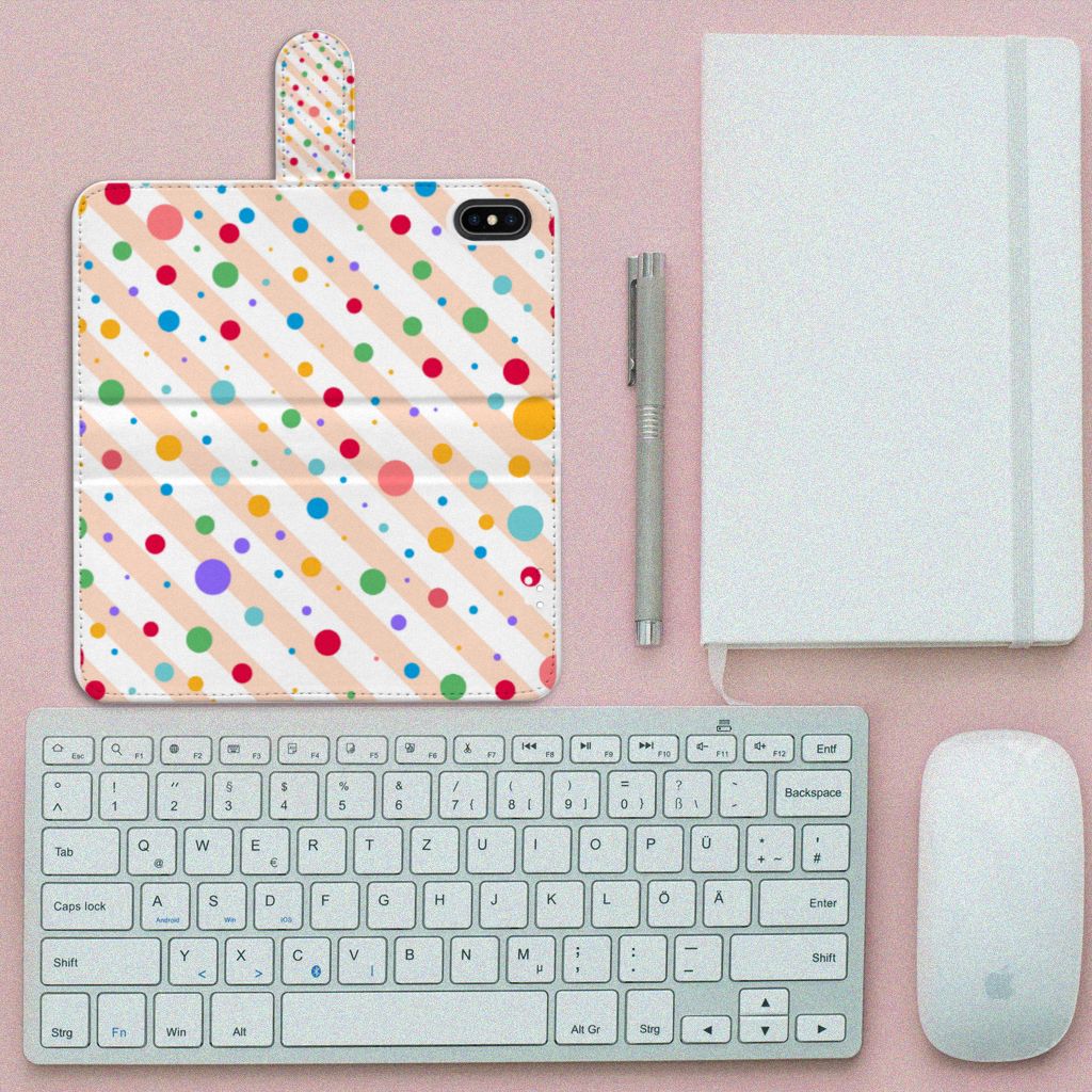 Een Apple iPhone Xs Max Telefoon Hoesje met verschillende kleuren stippen is een schitterende bescherming van jouw smartphone. Het boekhoesje met het design Dots in alle kleuren van de regenboog komt voor jou als geroepen. Maak je geen gebruik van dit zeer mooie hoesje, dan kan het met jouw smartphone een beetje beroerd aflopen. Dit mooie boekhoesje met verschillende kleuren stippen zorgt voor een volledige bescherming van je smartphone en wordt aan alle zijden bedrukt. Sommige stippen staan ook op het magnetische lipje aan de buitenzijde. Verder is de houder aan de binnenzijde van TPU. Jouw telefoon is dus zeer goed opgeborgen en kan geen kant op. Met een hoesje met stippen in verschillende kleuren op alle zijden blijft jouw telefoon volledig in tact. Heb je liever een boekhoesje met stippen in andere opvallende kleuren? Ontwerp dan zelf case met je eigen foto’s en teksten!