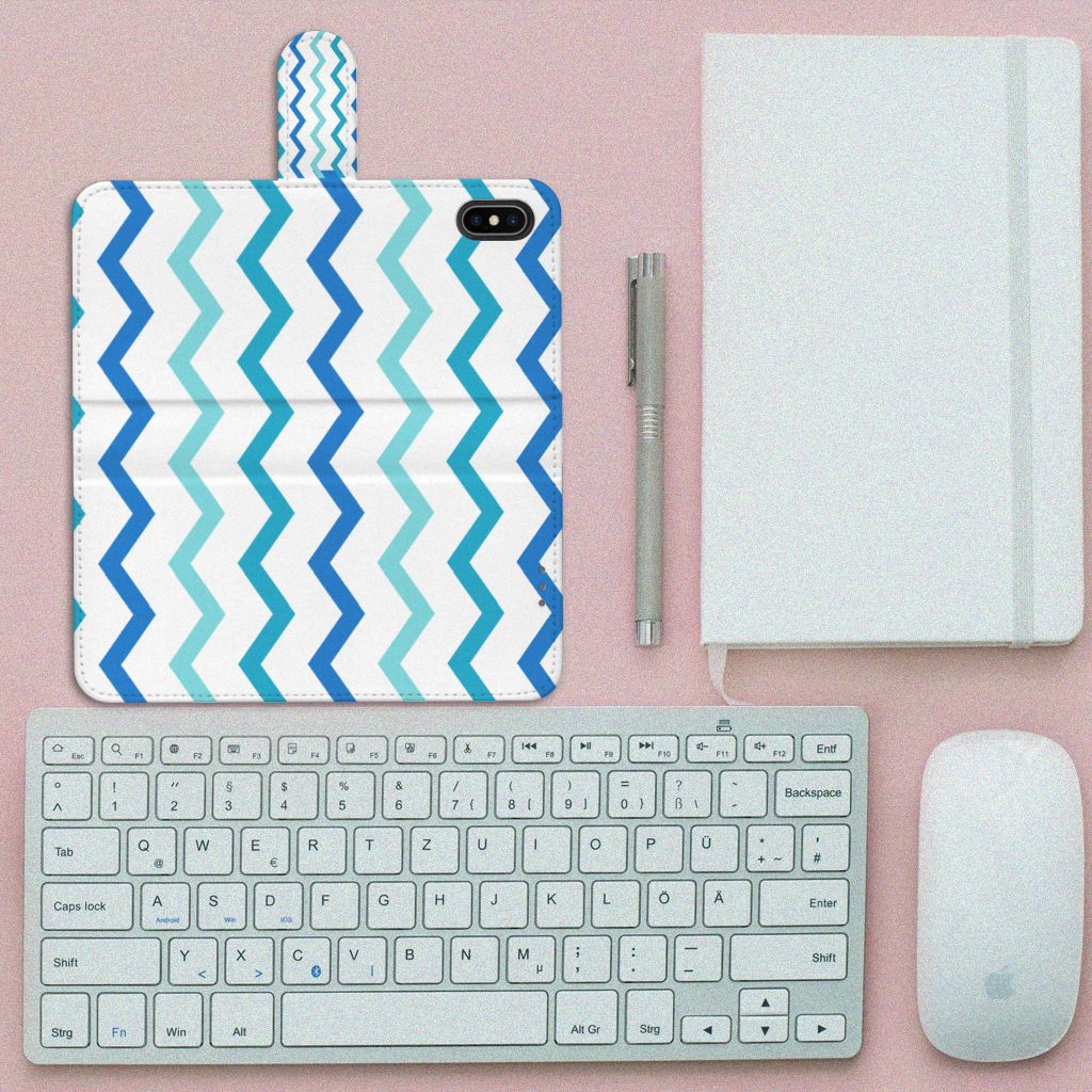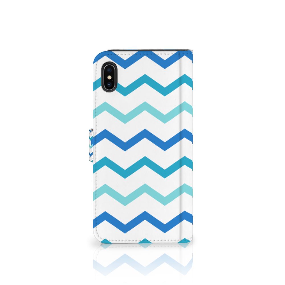 Dit zigzag blauwe design hoesje is speciaal ontworpen voor jou. We hebben bewust verschillende stijlen blauw gebruikt, zodat er voldoende sprake is van variatie. Dit blauwwitte Telefoon Hoesje ziet er super strak uit. Dat kan ook niet anders, als je weet dat onze zeer talentvolle designer er hoogstpersoonlijk voor verantwoordelijk is. Hij schudt wekelijks nieuwe designs uit zijn mouw en dit zigzag blauwe hoesje is een van zijn fraaiste creaties. Een heel dik design hoesje, al zeggen we het zelf. Valt dit blauwwitte design hoesje goed bij jou? Bestel het dan vandaag nog en je hebt het morgen in huis. Het design staat op een boekhoesje. Dit smartphonehoesje beschermt jouw Apple iPhone Xs Max aan alle zijden en beschikt over verschillende opbergvakjes voor pasjes en briefgeld. De case sluit perfect af met het lipje aan de buitenkant. De houder aan de binnenzijde is van TPU. Alle zijden van het hoesje worden bedrukt, inclusief het lipje.