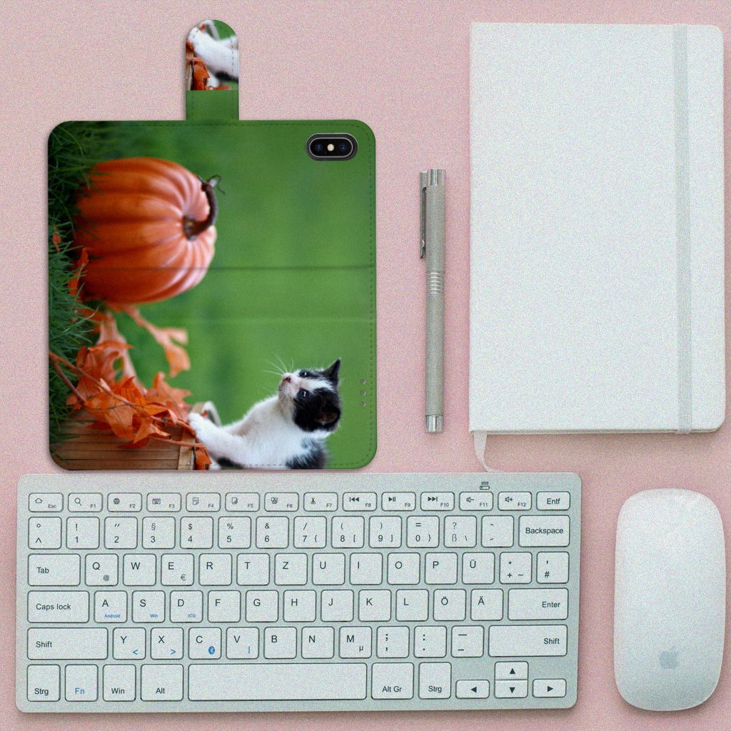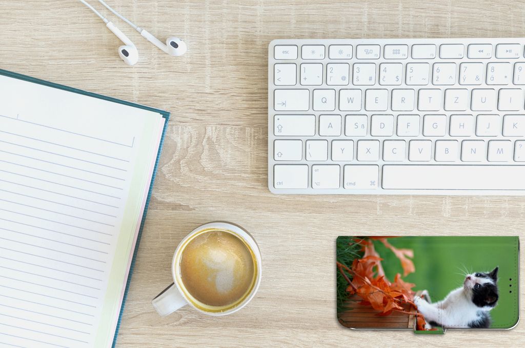 Misschien weet je wel dat huisdieren ontzettend goed voor ons zijn en voor het verlagen van onze stressniveaus. Het aaien van een kitten kan je direct kalmeren. Helaas kun je niet altijd een kitten bij je hebben. Wel kan het helpen om naar de kitten op jouw flip case te kijken als jij je gestrest voelt. Dat kan wanneer je dit Apple iPhone Xs Max Telefoonhoesje met Pasjes aanschaft waar een ontzettend schattige kitten op te vinden is. Heb je zelf katten en wil je liever naar hen kijken wanneer je onderweg bent? Ook dat kan! Met onze phone case designer tool kan je voor dezelfde prijs elke foto die je wilt op de voorkant van het hoesje laten zetten. Je kunt er zelfs nog een kalmerende quote of de naam van jouw kat bijvoegen.