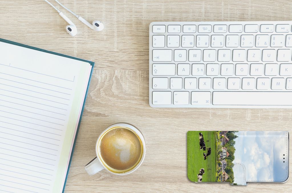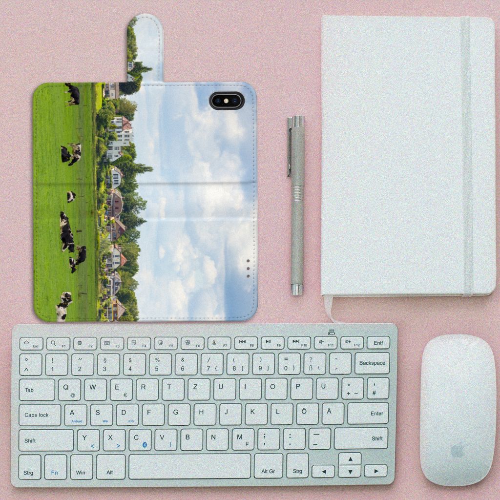 De koe is een kuddedier en graast het liefst met soortgenoten. Dit levert ook mooie plaatjes op, zoals je kunt zien op dit boekhoesje met Koeien. Dit smartphone hoesje met koeien ziet er super strak uit en is voorzien van verschillende opbergvakjes. Een Apple iPhone Xs Max Telefoonhoesje met Pasjes met grazende koeien beschermt jouw smartphone perfect. Alle zijden worden bedrukt met de koeienprint, net als het afsluitlipje aan de buitenkant. Koeien hebben graasperioden van ongeveer een uur. Ze herkauwen het liefst liggend, zoals op het hoesje. Zo goed als grazen voelt voor koeien, zo duurzaam zal jouw smartphone worden met dit boekhoesje met koeien. De binnenkant van het boekhoesje met koeien is van TPU, de buitenzijde van leer.
