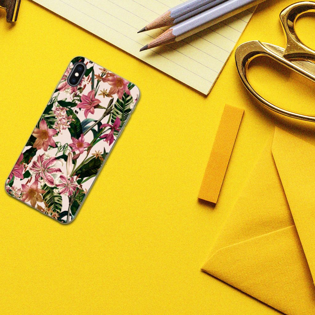 Dit Flowers design is een zegen voor de mens en zijn smartphone. De paarswitte bloemen en groene bladeren op deze Apple iPhone Xs Max TPU Case geven jouw smartphone een zeer sierlijke uitstraling. Je wordt er ook meteen vrolijker van als je aan het appen, mailen of aan het bellen bent. Valt dan je telefoon op de grond, dan zal er dankzij de tpu case met paarswitte bloemen en groene bladeren geen schade ontstaan. Helemaal niet als je er een screenprotector bij hebt gekocht. Onze tpu cases met paarswitte bloemen en groene bladeren zien er zeer prettig uit en zijn heel praktisch, getuige onder meer de opstaande randen en het flexibele materiaal. Alleen de achterkant van de tpu case wordt bedrukt met paarswitte bloemen en groene bladeren, de randen blijven transparant. Op deze tpu case kun je trouwens ook in no time zelf foto’s van jouw favoriete bloemen zetten.