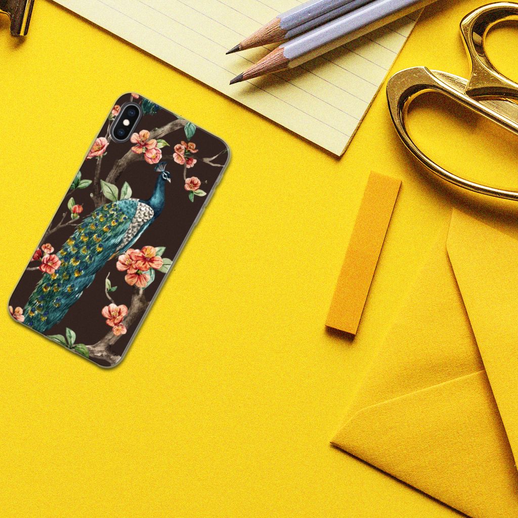 Op deze Apple iPhone Xs Max TPU Hoesje kun jij zo trots als een pauw zijn. Met dit geweldige design hoesje met een Pauw met Bloemen erop kun jij je smartphone voor zeer lange tijd beschermen. Deze tpu case is zeer duurzaam en gemaakt van zeer elastisch materiaal. Je bent zeer flexibel met deze TPU case met print van een pauw. Met een tpu case met fleurige bloemen en trotse pauwen wordt jouw telefoon er een stuk mooier op. De onderscheidende case heeft opstaande randen aan de voorzijde en wordt alleen aan de bovenzijde bedrukt. Zie jij liever jouw eigen huisdier op een telefoonhoesje? Dan adviseren we je zelf een hoesje te ontwerpen met onze unieke Phone Case Designer.