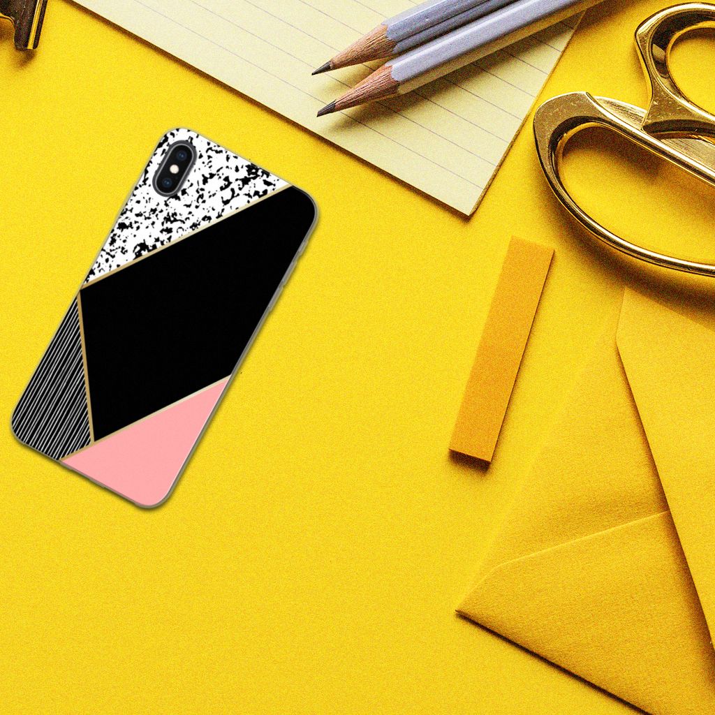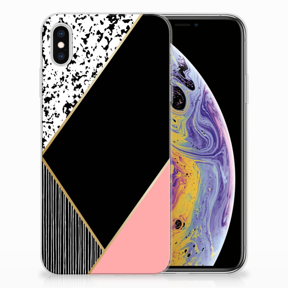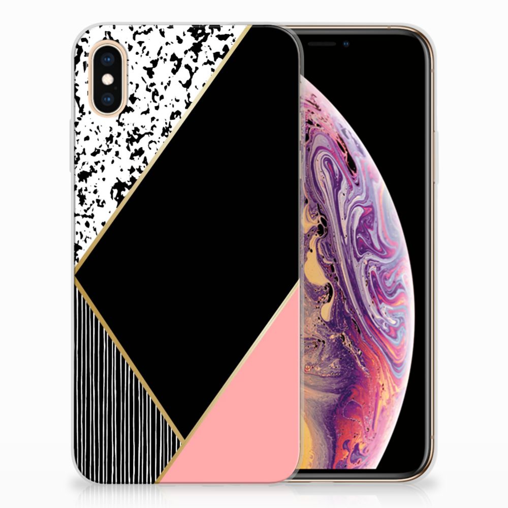 TPU Hoesje Apple iPhone Xs Max Zwart Roze Vormen Design