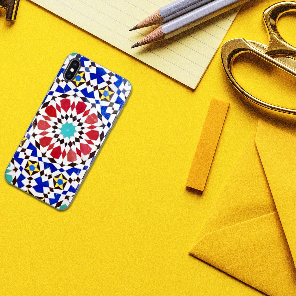 Aan design hoesjes met kunstvormen geen gebrek in onze uitgebreide collectie. Wat dacht je van dit design hoesje met Mozaïek . Dit is een kunstvorm waarbij een grote afbeelding wordt gemaakt uit een groot aantal kleine gekleurde steentjes (tesserae), die in een vloer of wand worden gemetseld. Deze gekleurde steentjes zie je terug op deze tpu case met design van mozaïek. Een tpu case is zeer flexibel. Een Apple iPhone Xs Max TPU Siliconen Hoesje met print zorgt voor een bescherming van de achterzijde en zijkanten van je smartphone. Deze zijkanten worden niet bedrukt. De Grieken en Romeinen beheersten de kunst al. Op diverse plaatsen in Europa zijn mozaïeken teruggevonden die tot op de dag van vandaag goed bewaard zijn gebleven. Met een tpu hoesje met mozaïek blijft jouw telefoon in tact.
