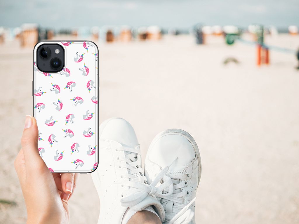 Vind jij unicorns ook zo leuk? Dan hebben wij het perfecte hoesje voor jouw iPhone 15 Plus! Met deze schattige unicorns heb jij gegarandeerd iets unieks in handen. Dit Back Case ligt prettig in de hand en is licht van gewicht. Het is een mix van hardcase en TPU. Deze combinatie samen zorgt wat ons betreft voor een perfect hoesje als je van niet te veel poespas houdt. Alleen de achterkant van je telefoon wordt beschermd. Daarom adviseren wij om dit hoesje in combinatie met een screenprotector te gebruiken. Bestel vandaag nog dit toffe smartphonehoesje met unicorn design!