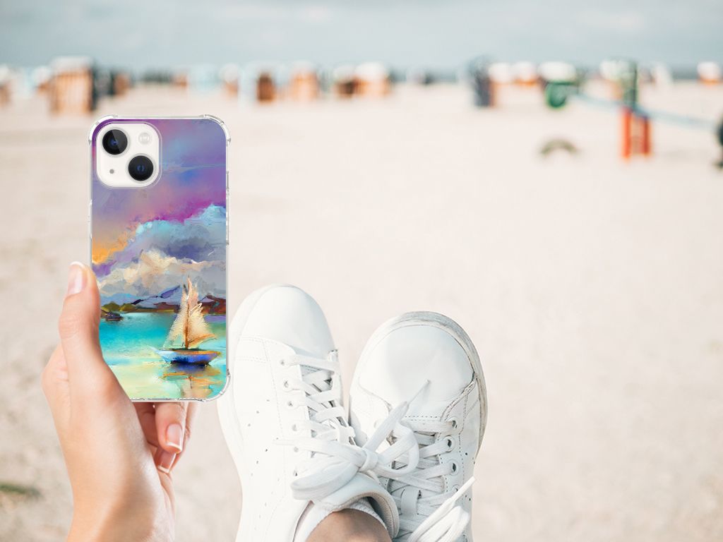 Ben je op zoek naar een uniek telefoonhoesje voor je iPhone 13? Dan ben je bij B2C Telecom aan het juiste adres! Speciaal voor jou hebben we dit prachtige Boat design in onze collectie hoesjes opgenomen. Het design wordt bedrukt op een Back Cover en is gemaakt van flexibel rubber. Het hoesje is perfect voor de actieve smartphonegebruiker door de opstaande randen/hoeken. Denk aan mensen die veel sporten, reizen of wandelen en net iets meer zekerheid willen als het op hun geliefde telefoon aankomt. Het design wordt alleen aan de bovenkant van het hoesje bedrukt en de randen blijven transparant. Aan de zijkanten zijn uitsparingen gemaakt waardoor je met gemak alle knoppen en poorten kunt bedienen. Wij adviseren om dit hoesje in combinatie met een screenprotector te gebruiken voor een langere levensduur van je telefoon. Wil je dit hoesje nog iets extra's geven? Voeg dan gratis je naam of een quote toe! Is dit design hoesje toch niet helemaal wat je zocht? Ontwerp dan zelf een hoesje in ons ontwerpprogramma.