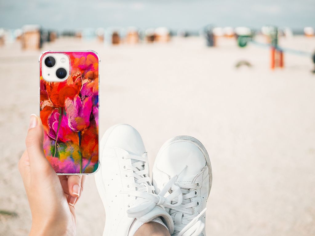 Ben je op zoek naar een uniek telefoonhoesje voor je iPhone 13? Dan ben je bij B2C Telecom aan het juiste adres! Speciaal voor jou hebben we dit prachtige Tulips design in onze collectie hoesjes opgenomen. Het design wordt bedrukt op een Back Cover en is gemaakt van flexibel rubber. Het hoesje is perfect voor de actieve smartphonegebruiker door de opstaande randen/hoeken. Denk aan mensen die veel sporten, reizen of wandelen en net iets meer zekerheid willen als het op hun geliefde telefoon aankomt. Het design wordt alleen aan de bovenkant van het hoesje bedrukt en de randen blijven transparant. Aan de zijkanten zijn uitsparingen gemaakt waardoor je met gemak alle knoppen en poorten kunt bedienen. Wij adviseren om dit hoesje in combinatie met een screenprotector te gebruiken voor een langere levensduur van je telefoon. Wil je dit hoesje nog iets extra's geven? Voeg dan gratis je naam of een quote toe! Is dit design hoesje toch niet helemaal wat je zocht? Ontwerp dan zelf een hoesje in ons ontwerpprogramma.
