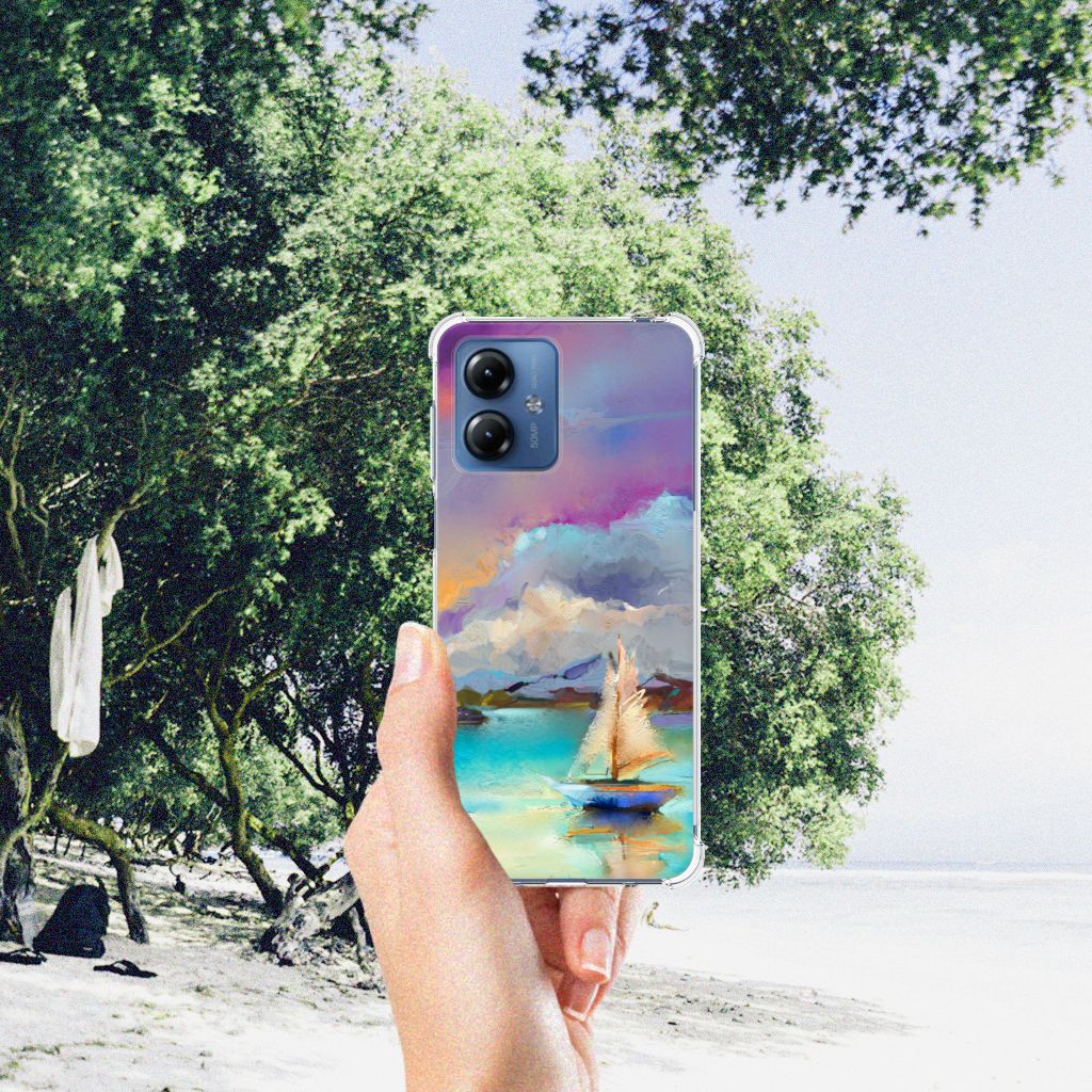 Ben je op zoek naar een uniek telefoonhoesje voor je Motorola Moto G14? Dan ben je bij B2C Telecom aan het juiste adres! Speciaal voor jou hebben we dit prachtige Boat design in onze collectie hoesjes opgenomen. Het design wordt bedrukt op een Back Cover en is gemaakt van flexibel rubber. Het hoesje is perfect voor de actieve smartphonegebruiker door de opstaande randen/hoeken. Denk aan mensen die veel sporten, reizen of wandelen en net iets meer zekerheid willen als het op hun geliefde telefoon aankomt. Het design wordt alleen aan de bovenkant van het hoesje bedrukt en de randen blijven transparant. Aan de zijkanten zijn uitsparingen gemaakt waardoor je met gemak alle knoppen en poorten kunt bedienen. Wij adviseren om dit hoesje in combinatie met een screenprotector te gebruiken voor een langere levensduur van je telefoon. Wil je dit hoesje nog iets extra's geven? Voeg dan gratis je naam of een quote toe! Is dit design hoesje toch niet helemaal wat je zocht? Ontwerp dan zelf een hoesje in ons ontwerpprogramma.
