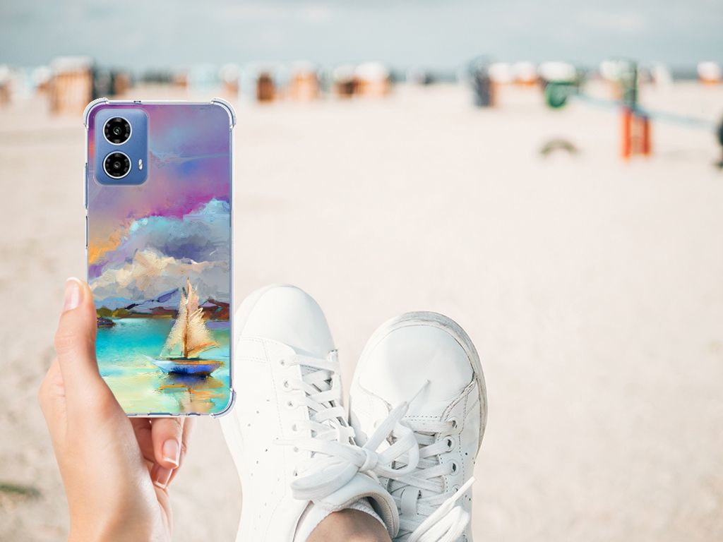 Ben je op zoek naar een uniek telefoonhoesje voor je Motorola Moto G34? Dan ben je bij B2C Telecom aan het juiste adres! Speciaal voor jou hebben we dit prachtige Boat design in onze collectie hoesjes opgenomen. Het design wordt bedrukt op een Back Cover en is gemaakt van flexibel rubber. Het hoesje is perfect voor de actieve smartphonegebruiker door de opstaande randen/hoeken. Denk aan mensen die veel sporten, reizen of wandelen en net iets meer zekerheid willen als het op hun geliefde telefoon aankomt. Het design wordt alleen aan de bovenkant van het hoesje bedrukt en de randen blijven transparant. Aan de zijkanten zijn uitsparingen gemaakt waardoor je met gemak alle knoppen en poorten kunt bedienen. Wij adviseren om dit hoesje in combinatie met een screenprotector te gebruiken voor een langere levensduur van je telefoon. Wil je dit hoesje nog iets extra's geven? Voeg dan gratis je naam of een quote toe! Is dit design hoesje toch niet helemaal wat je zocht? Ontwerp dan zelf een hoesje in ons ontwerpprogramma.