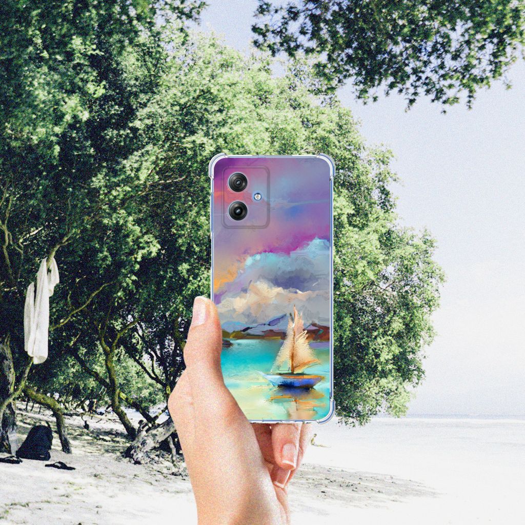 Ben je op zoek naar een uniek telefoonhoesje voor je Motorola Moto G54? Dan ben je bij B2C Telecom aan het juiste adres! Speciaal voor jou hebben we dit prachtige Boat design in onze collectie hoesjes opgenomen. Het design wordt bedrukt op een Back Cover en is gemaakt van flexibel rubber. Het hoesje is perfect voor de actieve smartphonegebruiker door de opstaande randen/hoeken. Denk aan mensen die veel sporten, reizen of wandelen en net iets meer zekerheid willen als het op hun geliefde telefoon aankomt. Het design wordt alleen aan de bovenkant van het hoesje bedrukt en de randen blijven transparant. Aan de zijkanten zijn uitsparingen gemaakt waardoor je met gemak alle knoppen en poorten kunt bedienen. Wij adviseren om dit hoesje in combinatie met een screenprotector te gebruiken voor een langere levensduur van je telefoon. Wil je dit hoesje nog iets extra's geven? Voeg dan gratis je naam of een quote toe! Is dit design hoesje toch niet helemaal wat je zocht? Ontwerp dan zelf een hoesje in ons ontwerpprogramma.